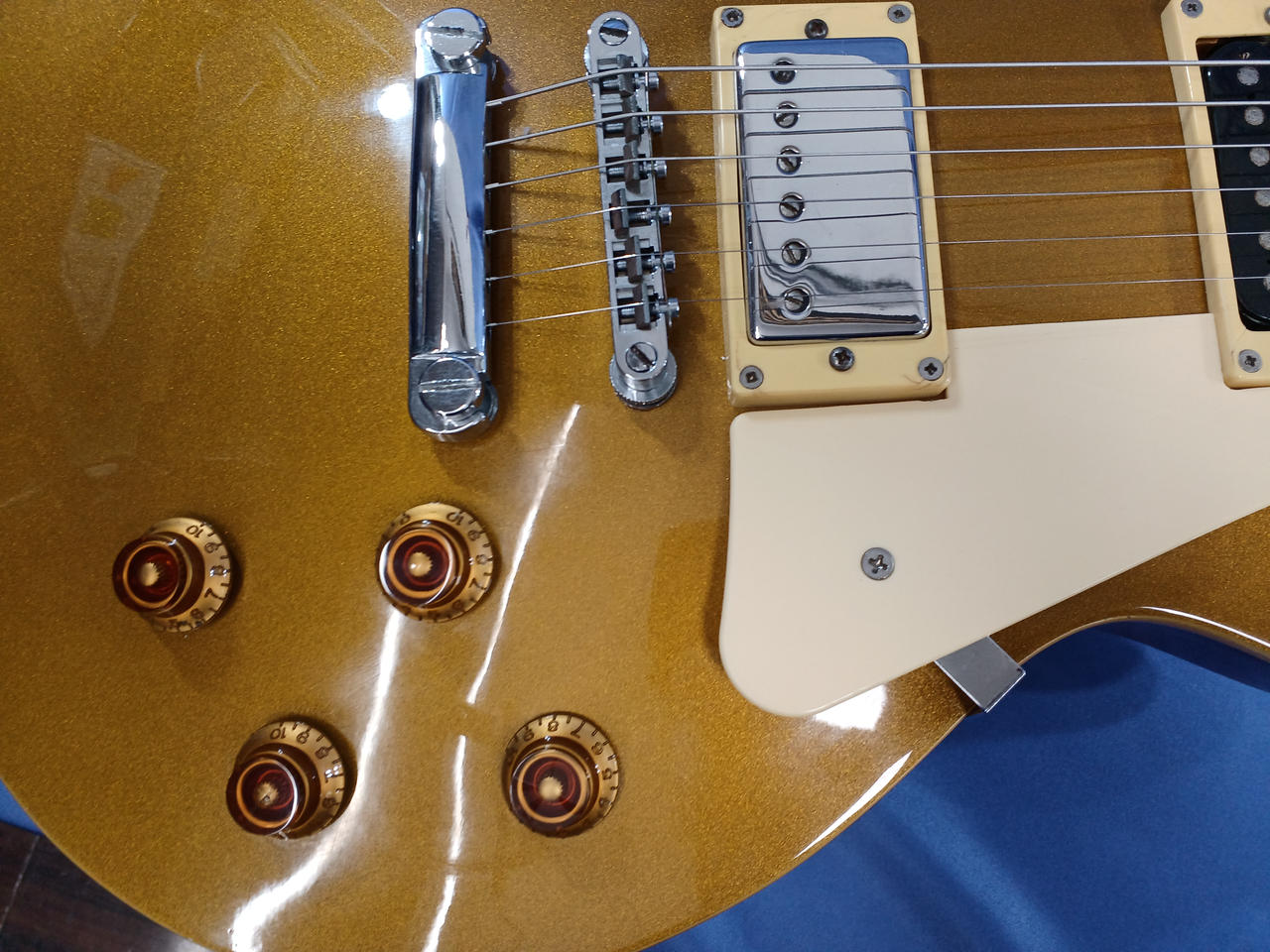 カスタマイズされたEpiphoneのゴールドトップレスポール |