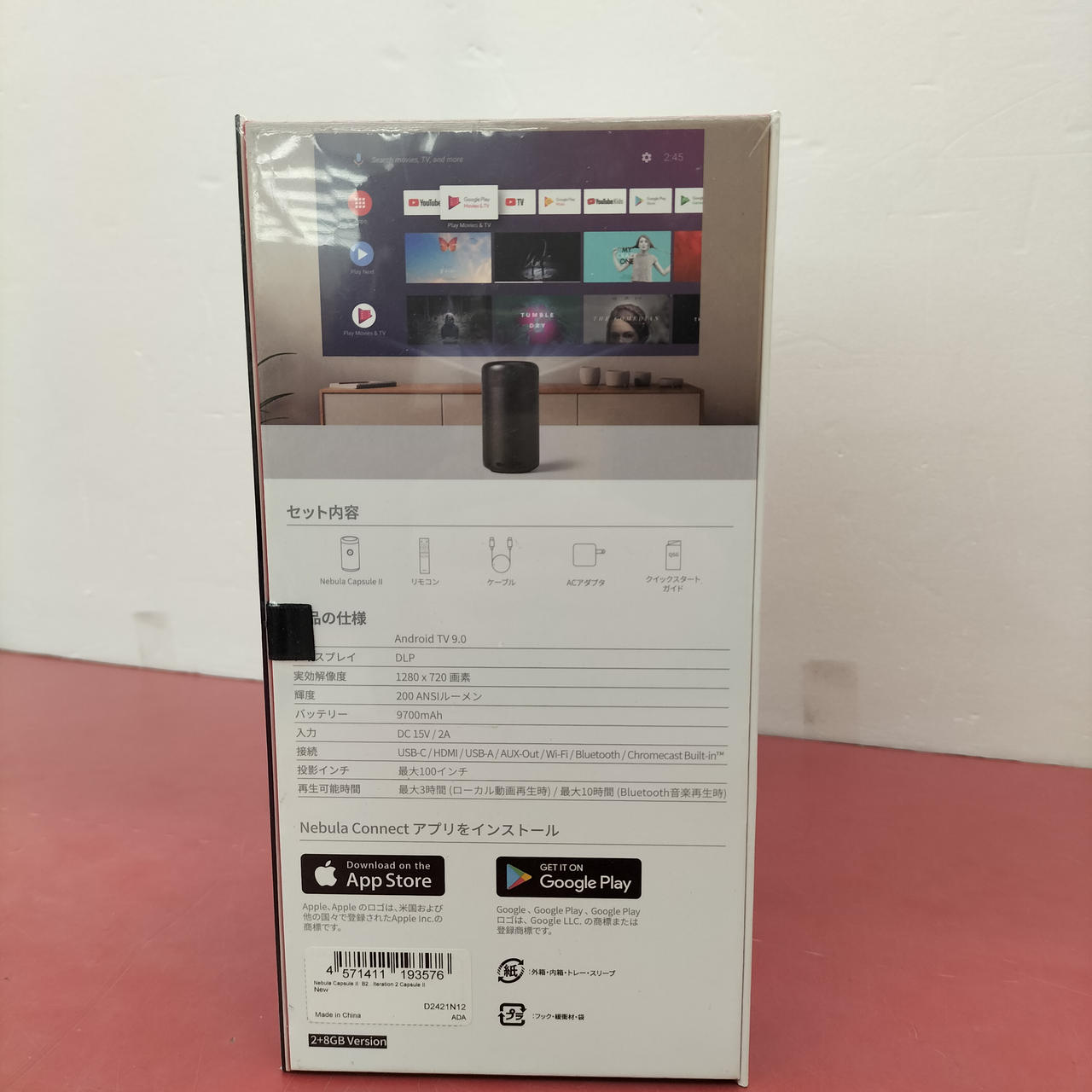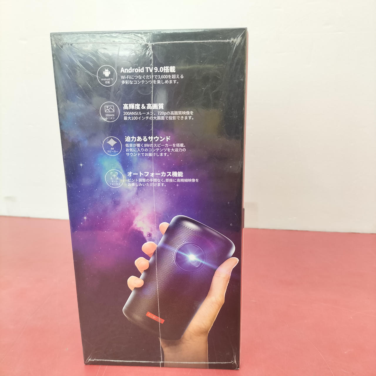 パネルタイプ:DLP アスペクト比:16:9 パネル画素数:1280x720 最大輝度:200ルーメン 光源:LED光源 最大輝度:200ルーメン 入力端子:HDMI/USB Wi-Fi接続対応 |