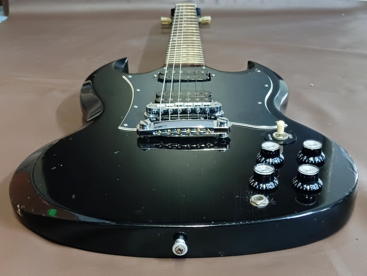 ■1961年に発売された根強い人気のロックンロール王道モデルSG ■中域の効いたウォームなトーンからリアPUによるエッジ感のある粘り強い歪みなど、心地良いサウンドを奏でます |