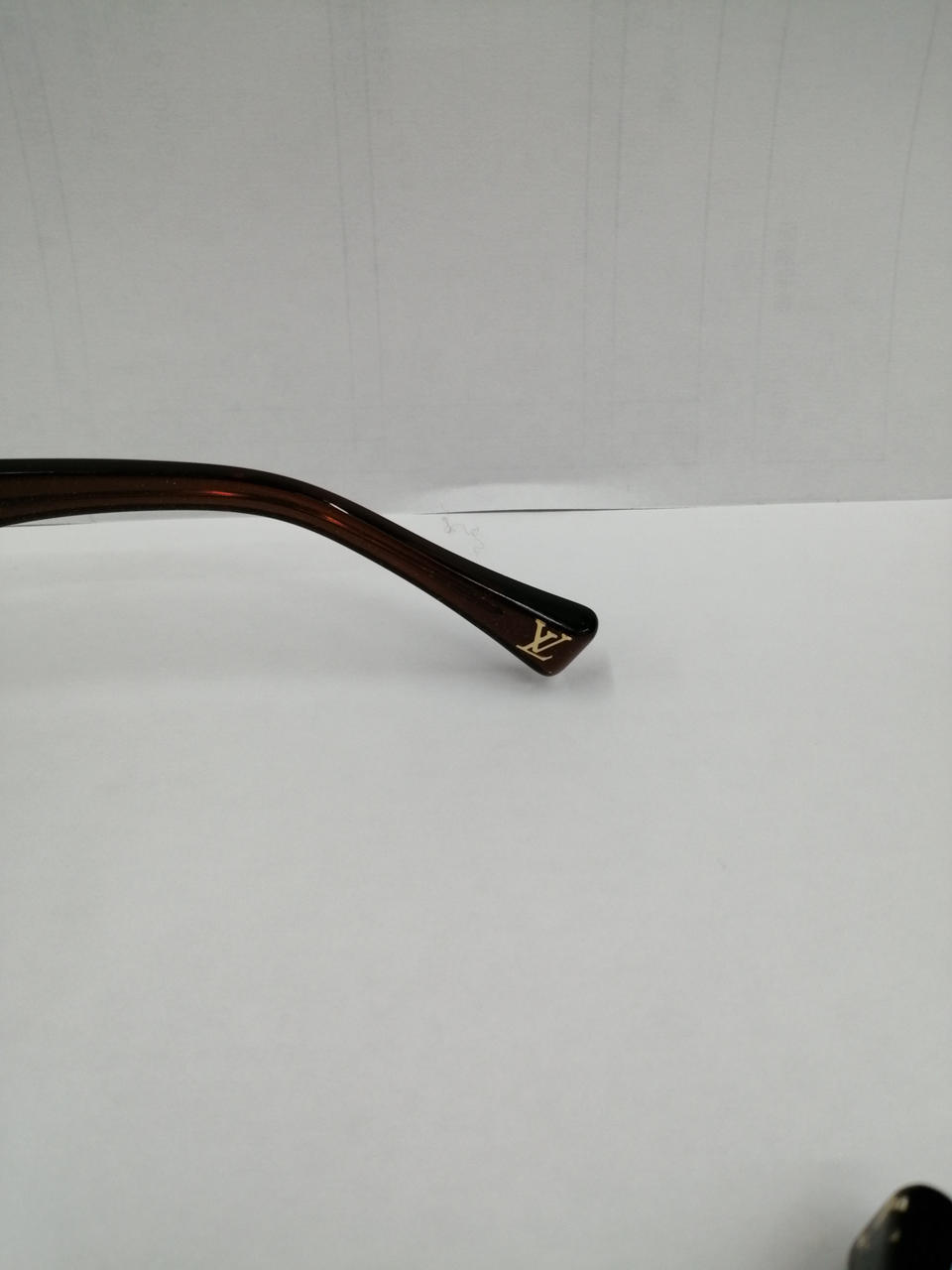 若干の歪みがあり、平面に置くと右側テンプルに数ミリ浮きができます。 |