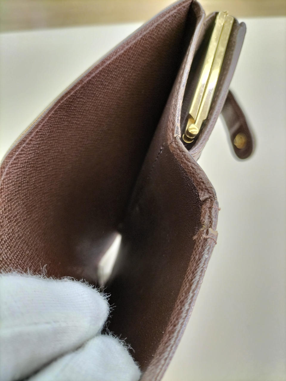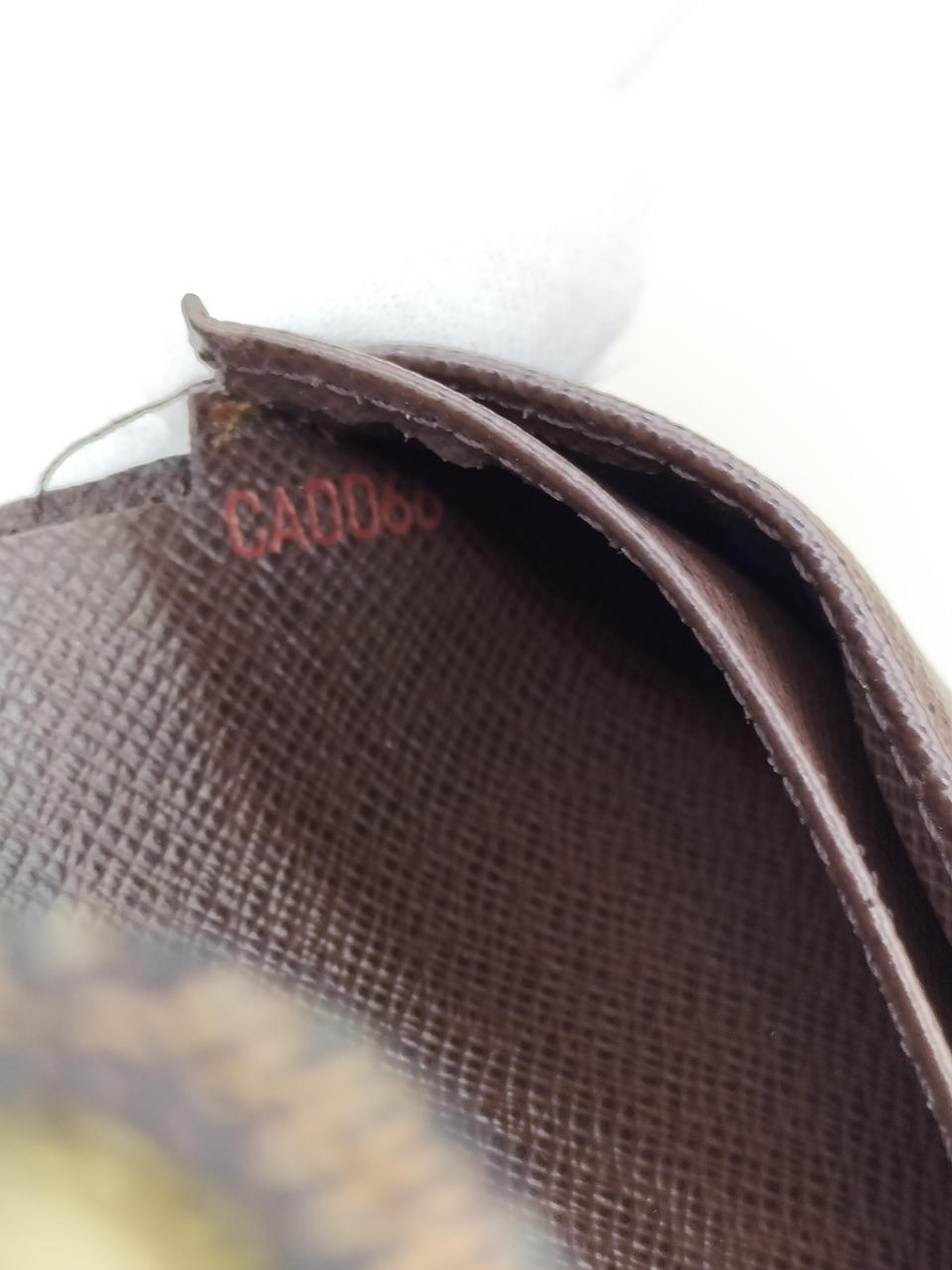 本体下部のカードポケットに縫い目のほつれがあります