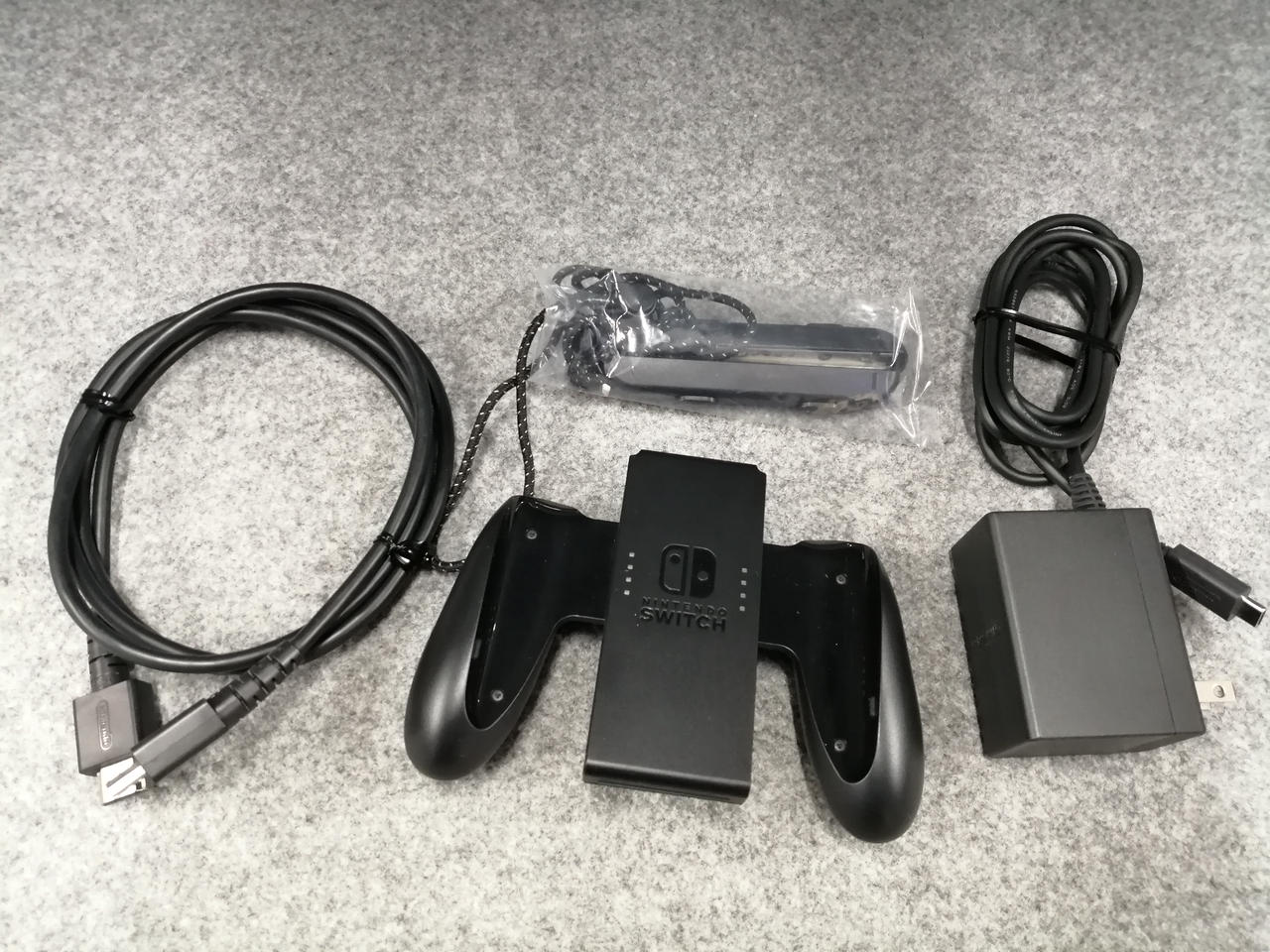 箱、電源アダプタ、接続ケーブル、ドック、Joy-Con、グリップ付属 |
