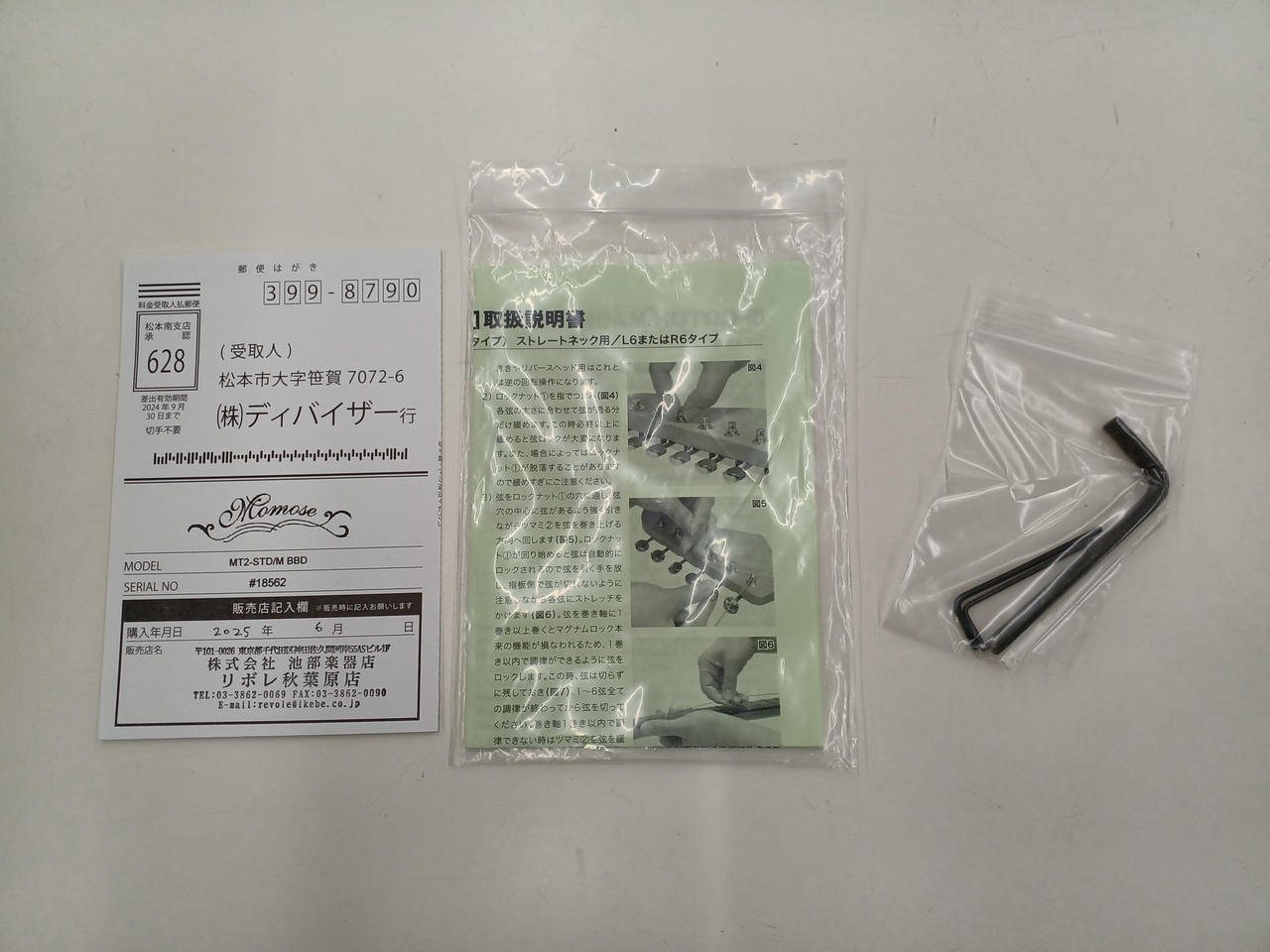 専用ギグバッグ、調整レンチ付属 |