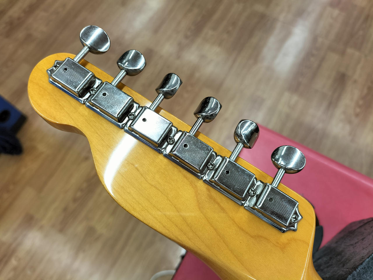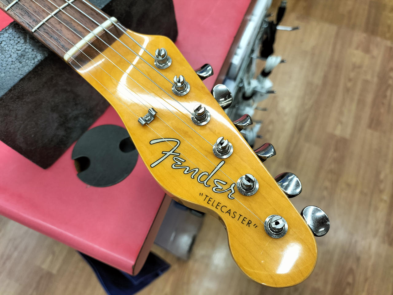 スパゲッティロゴとバインディングが特徴的な62年テレキャスターのコピーモデルです! |
