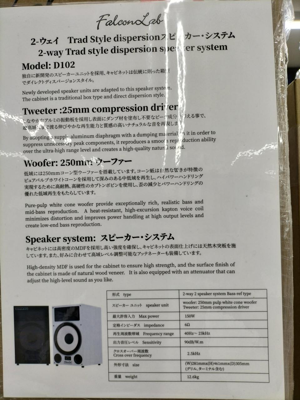 スピーカーユニット:高音用:25mm コンプレッションドライバー・低音用:250mm パルプホワイト コーンウーファー