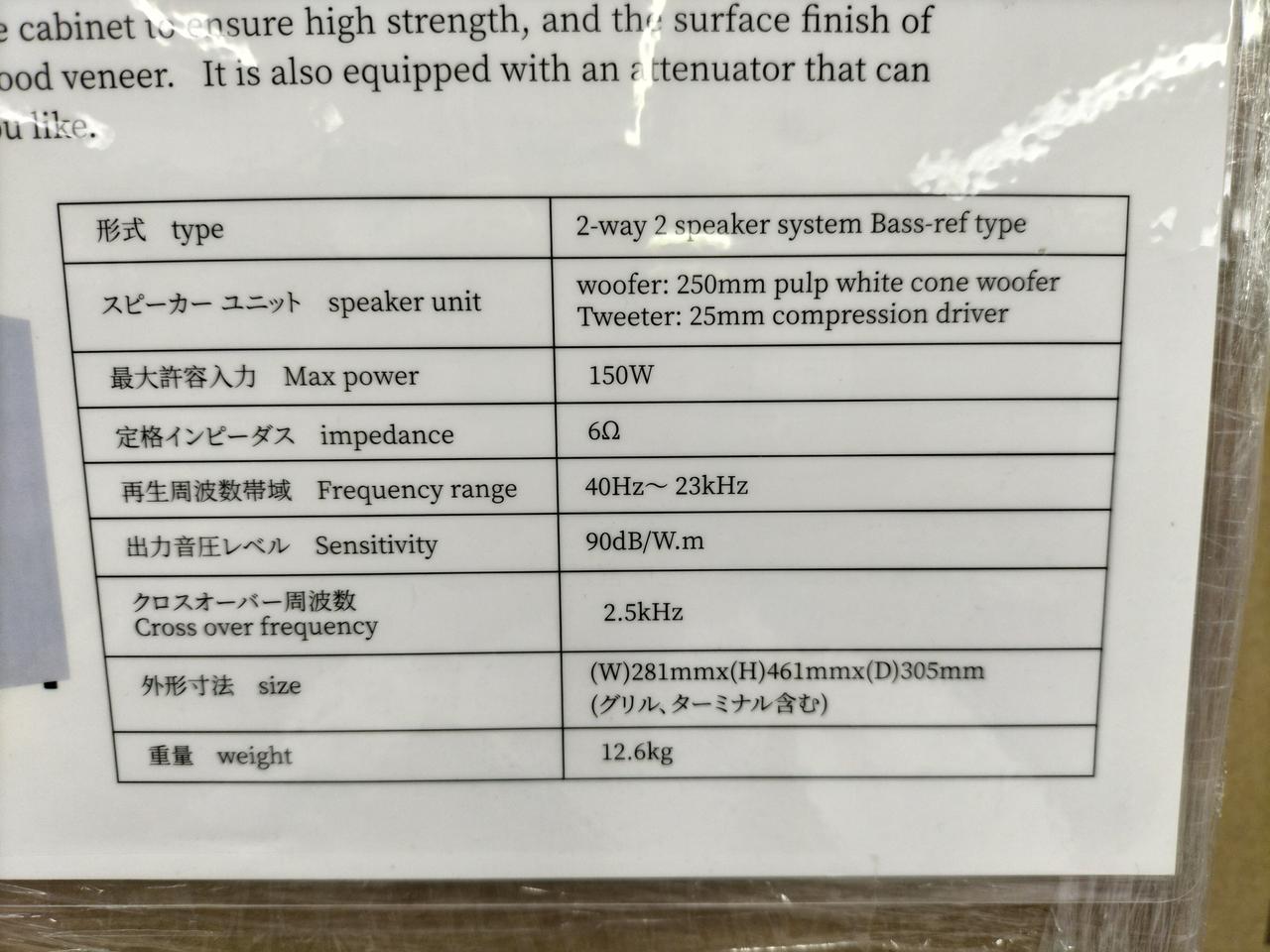 スピーカーユニット:高音用:25mm コンプレッションドライバー・低音用:250mm パルプホワイト コーンウーファー |