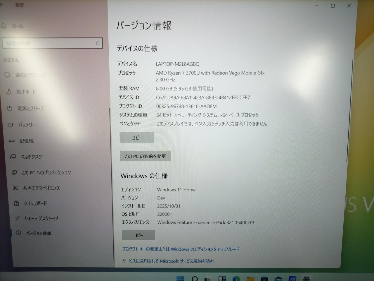OS:Windows11 home/CPU:Ryzen7 3700U @2.3GHz/RAM:8GB/ストレージ:SSD512GB |