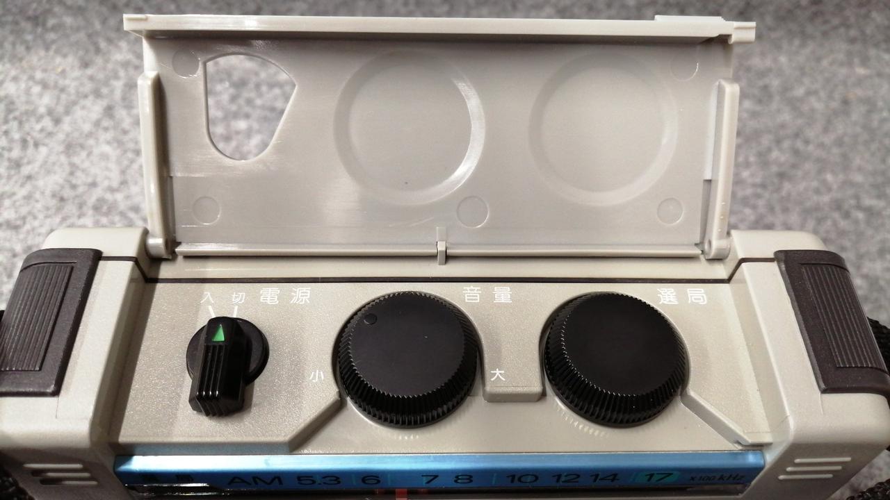 砂、チリ、雨に強い野外用のラジオ。 |