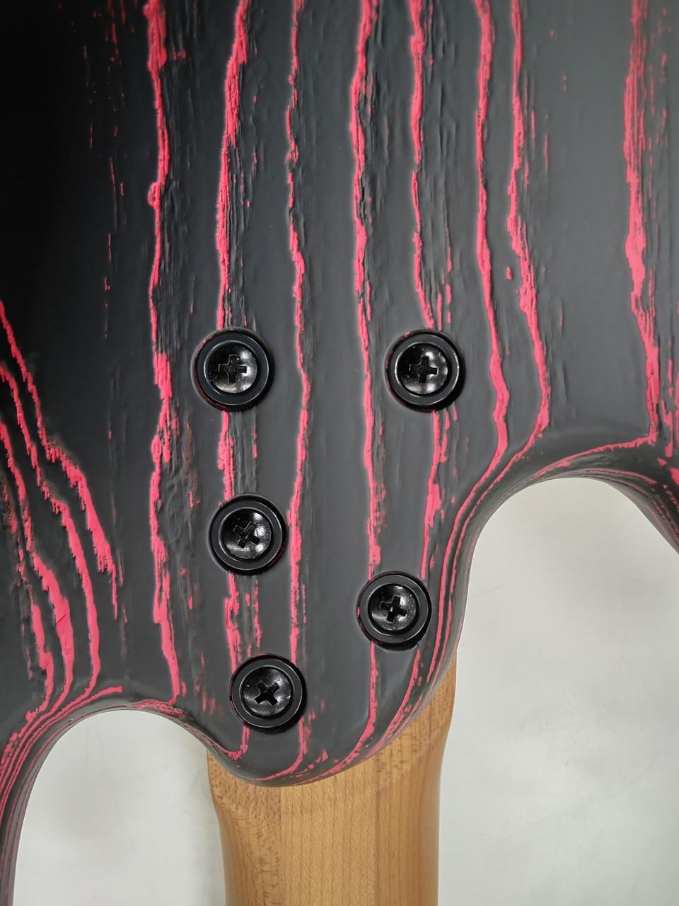 マッカーサー・エボニー指板を採用した3ピースのローステッド・メイプルネックとSolid Swamp Ashのボルトオン構造が大きな特徴 |