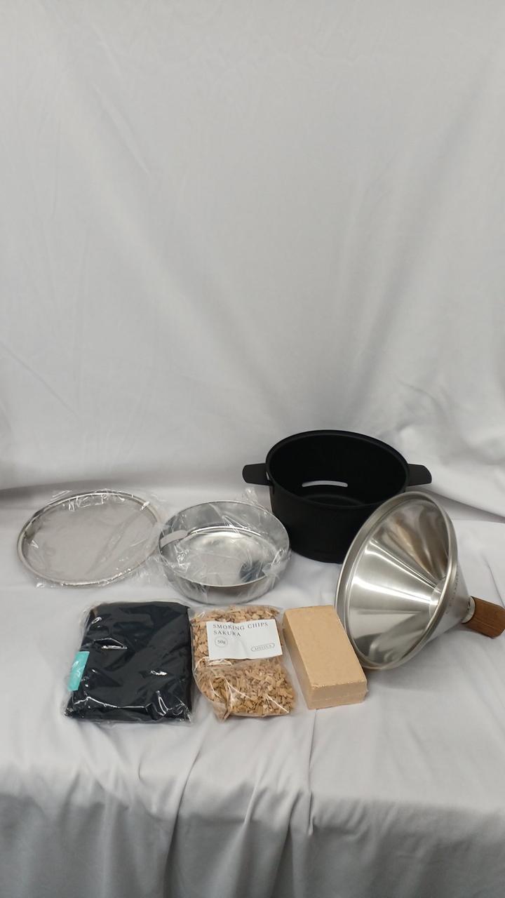 テーブルに置ける小さな燻製器。チップ・ウッド両方に対応。 |