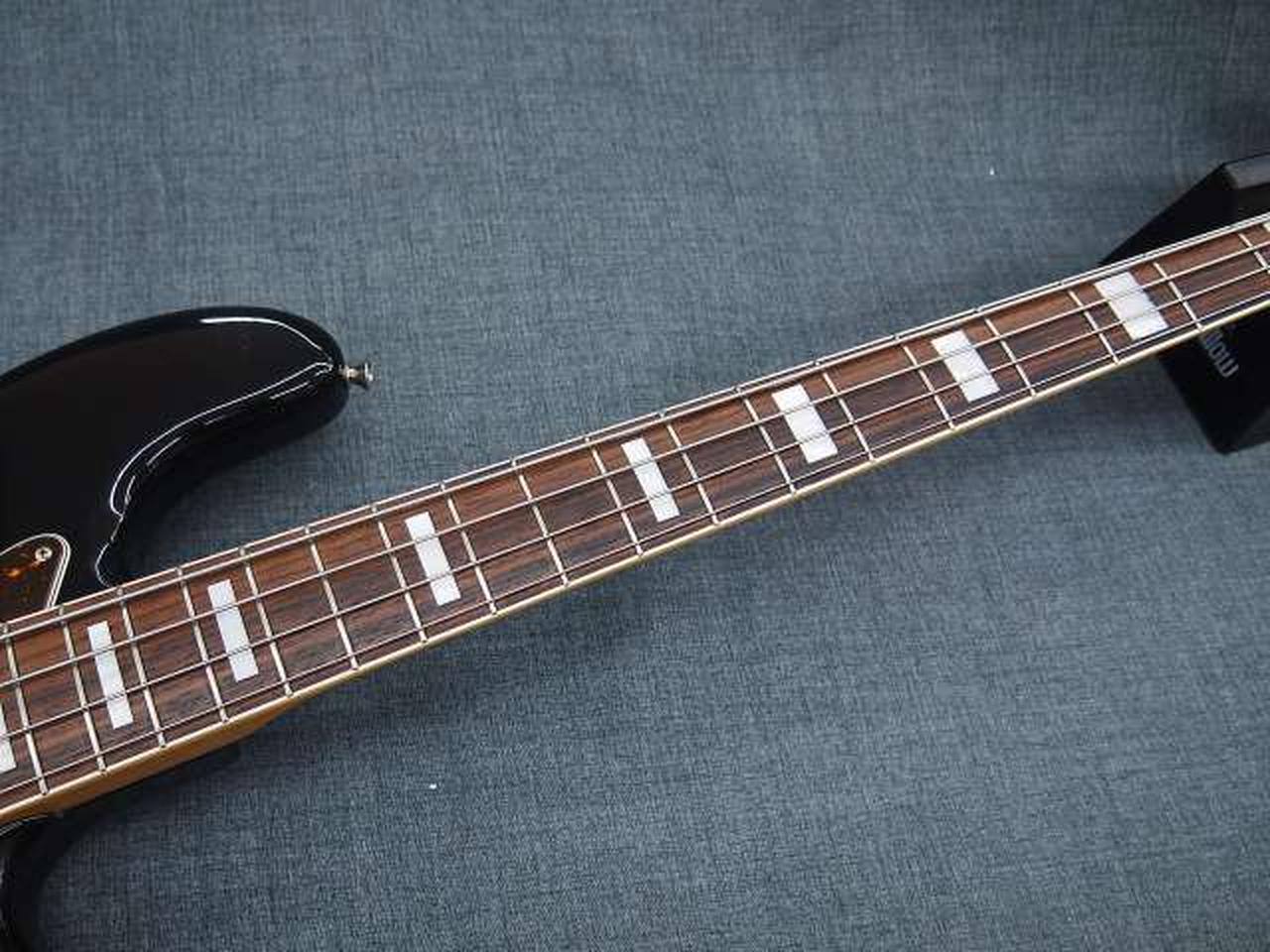 ブロックインレイ、ネックバインディングと66年頃の仕様を踏襲したジャズベース |