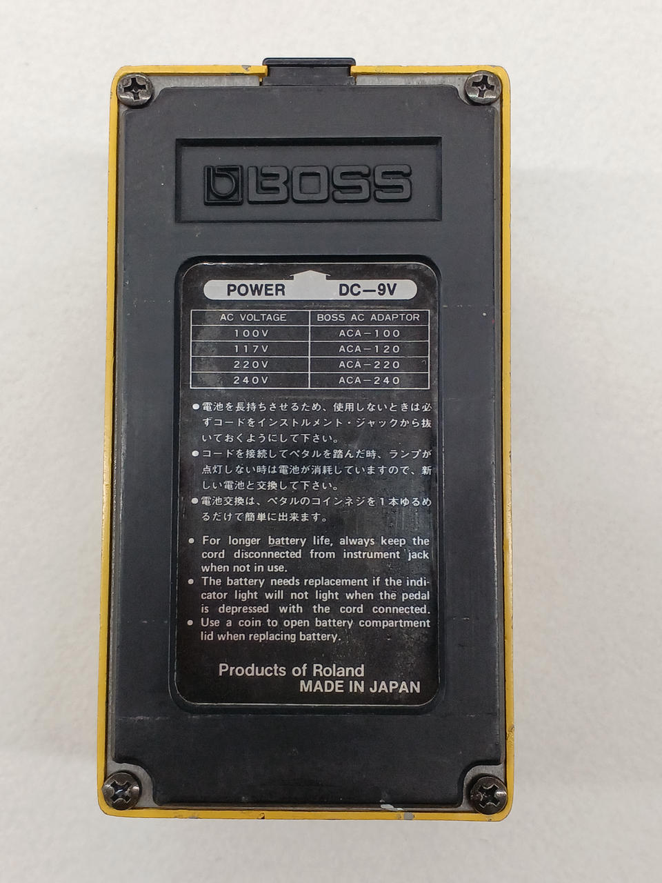 オペアンプ:RC3403ADB・銀ネジ・゙白スイッチ期のOD-1です。 近年の歪みペダルのイメージとは違い、歪まないからこそ、純粋にアンプをプッシュUPしてくれる増幅ペダルです。 シンプルながら奥深い音楽アイテムです。 |