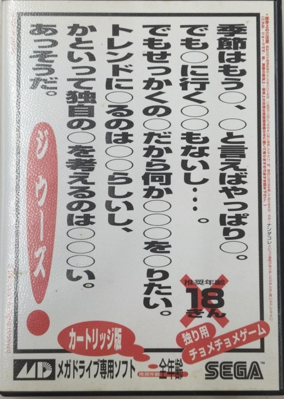 独り・チョメチョメゲーム-----メガドライブカートリッジ版 |
