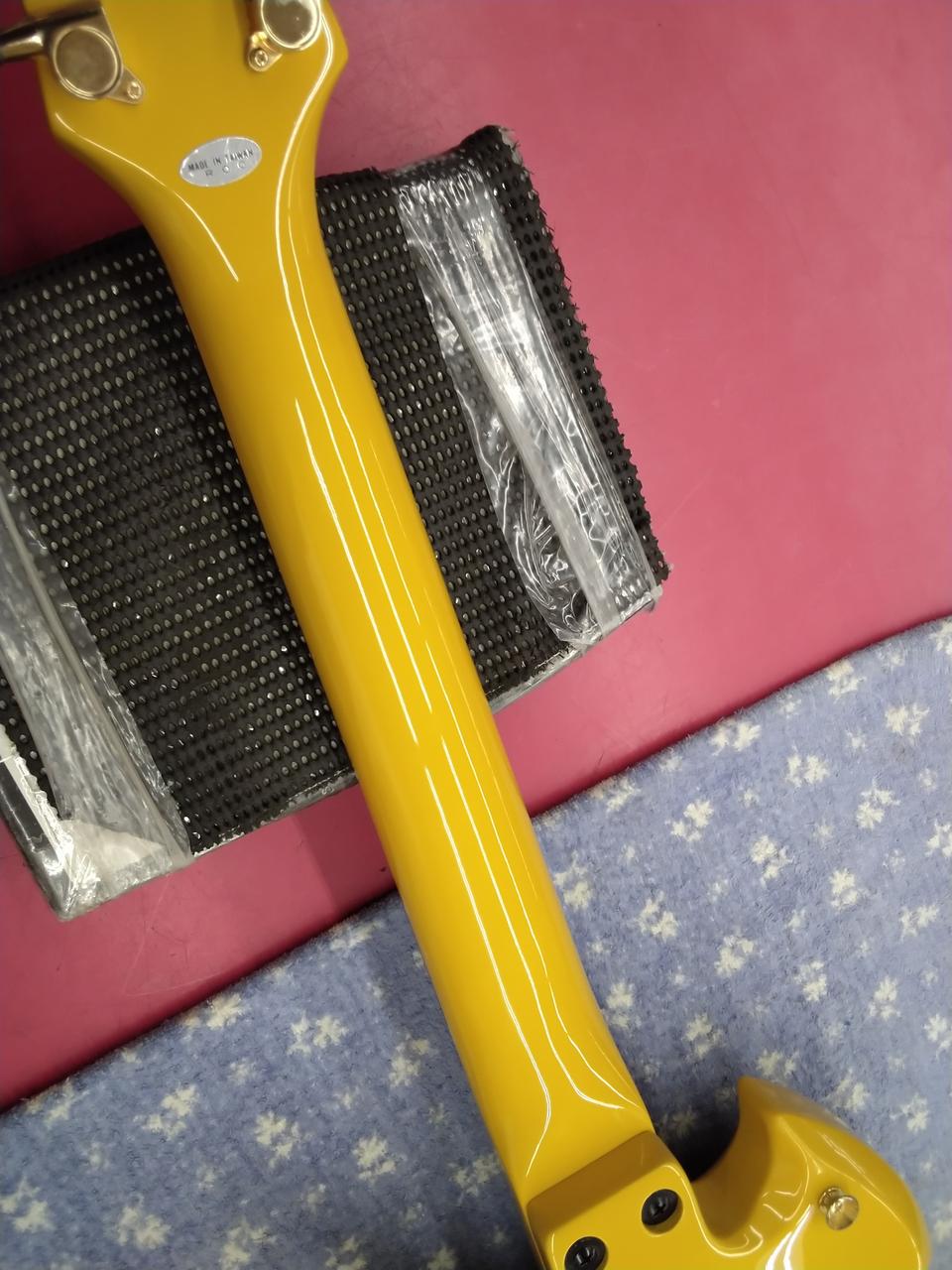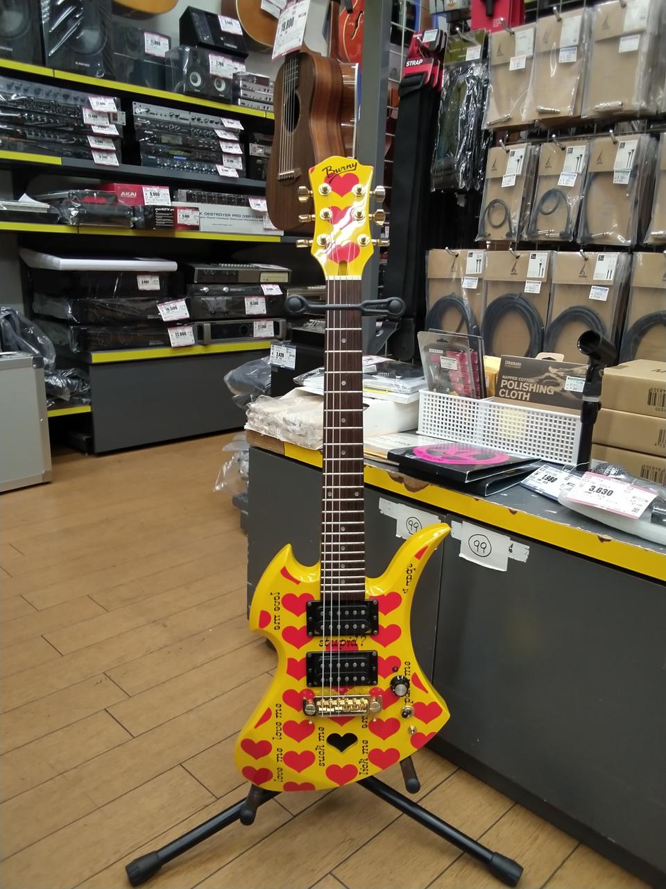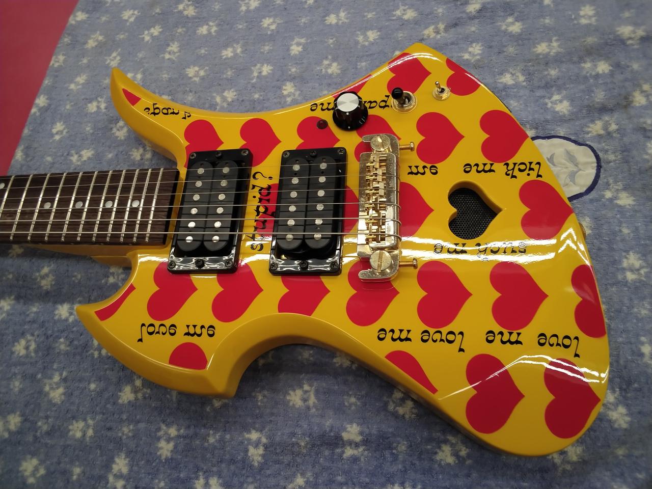 J-ROCKの雄: HIDE の晩年の愛機:イエローハート。 そのアンプ内蔵のミニ・ギター版です。 |