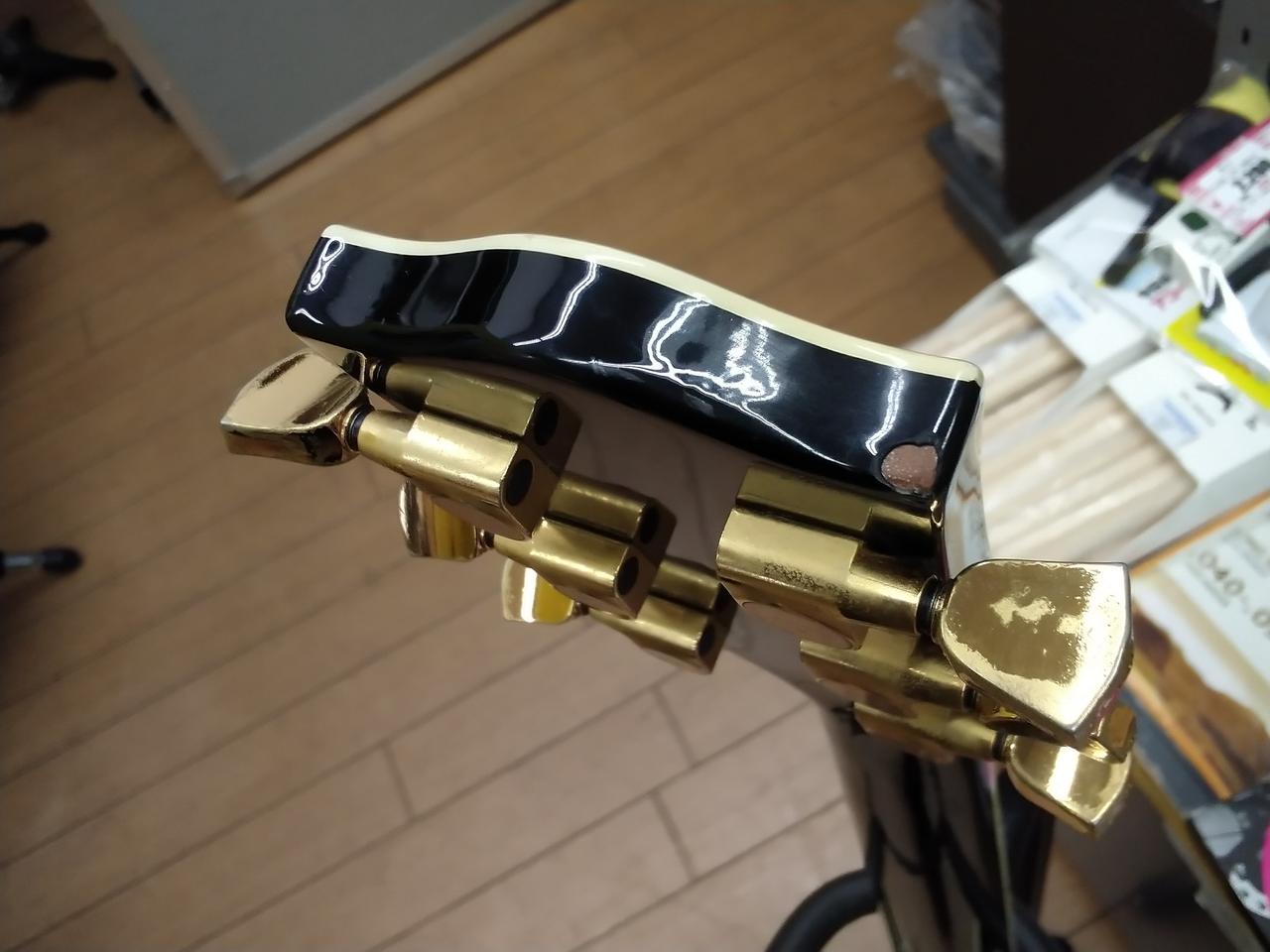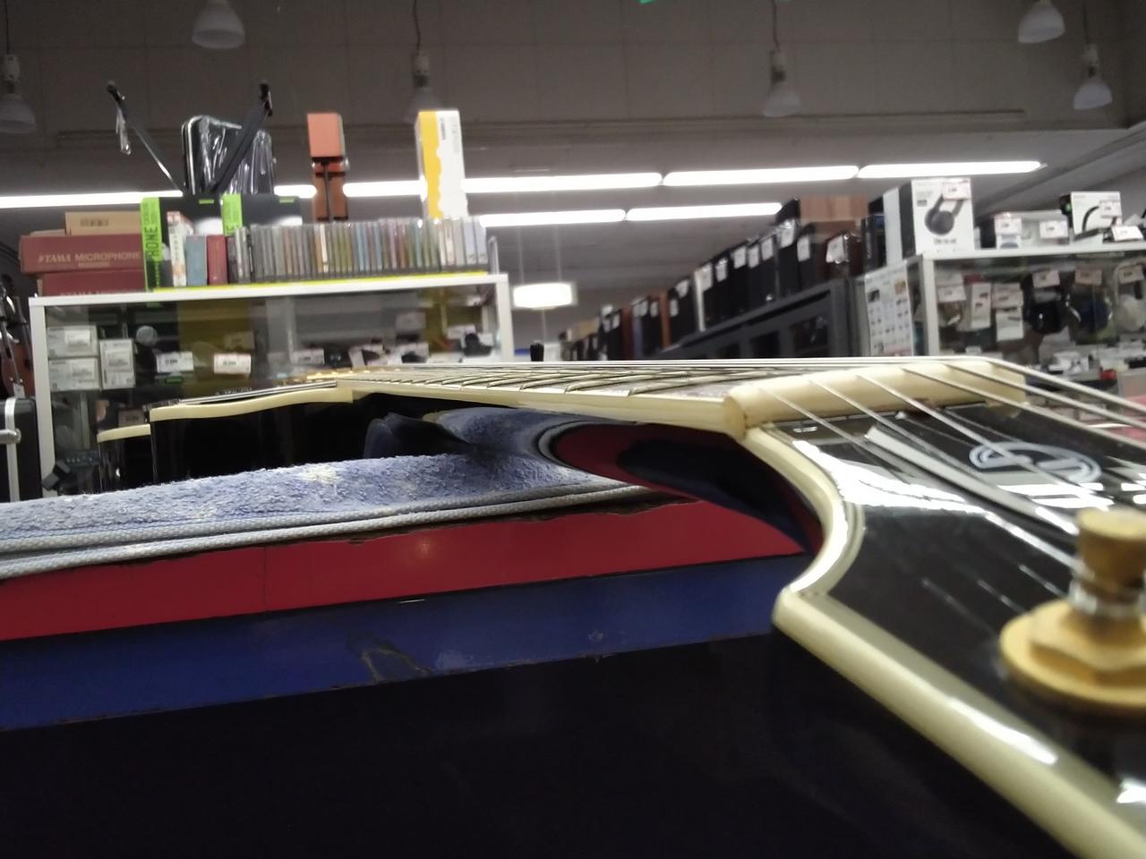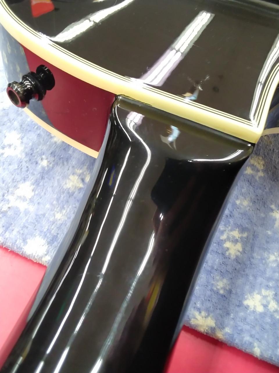 ※ネックジョイント部の塗装に、木材が動いたような形跡があり |