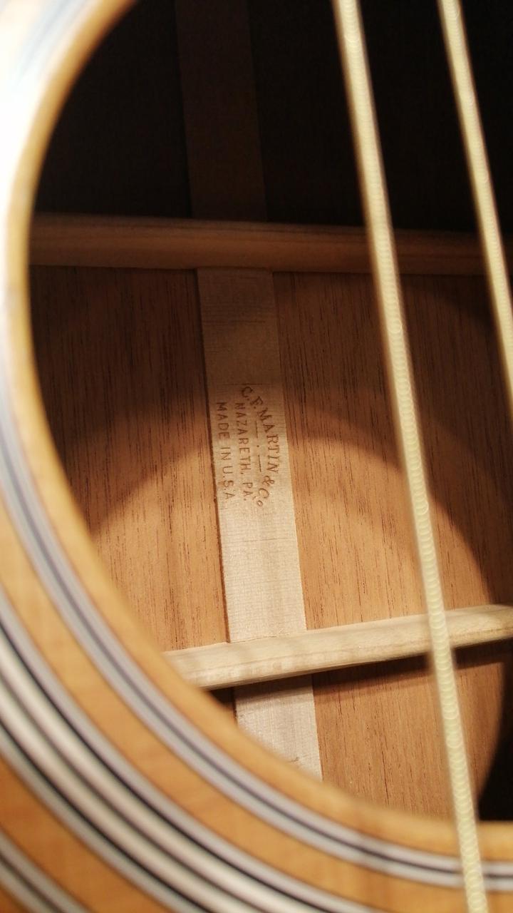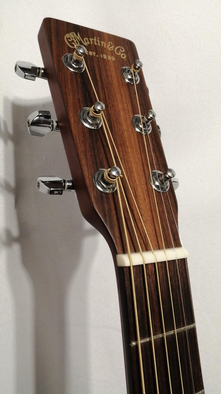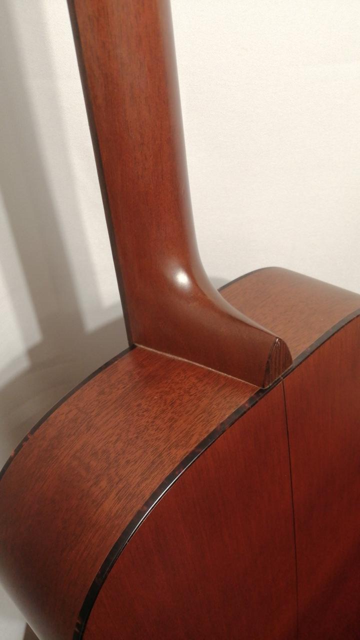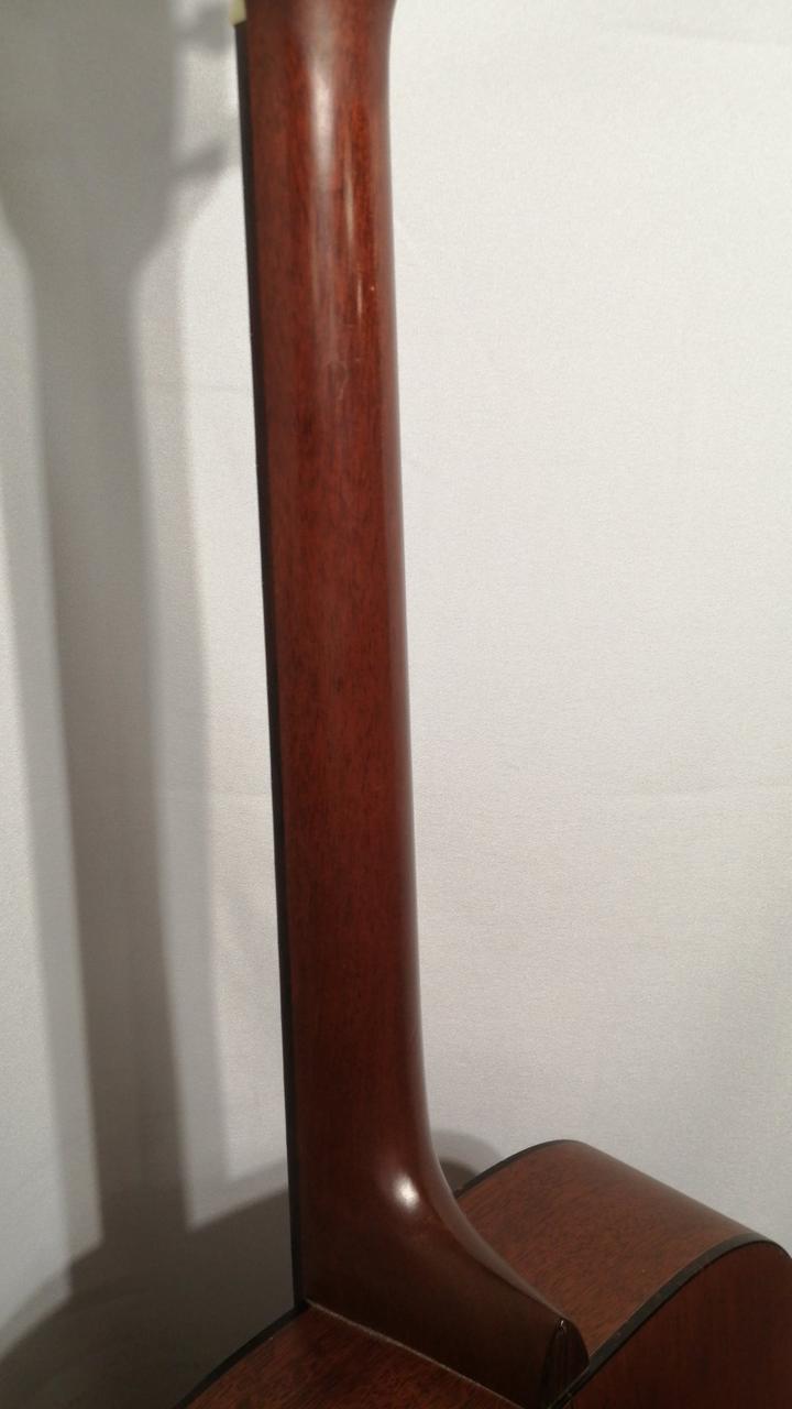 サイドバックにマホガ二―を採用し、ルックスは000-18と同じですが、弦長が645mmと000より長いOMスタイルを採用。 |