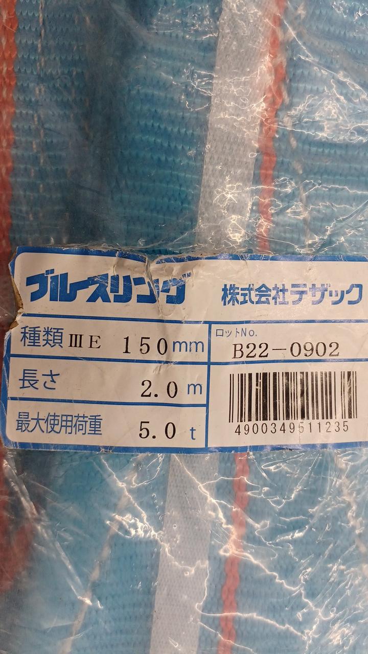 ベルト幅:150mm 安全使用荷重:5.0t(吊り方によって変わります) |