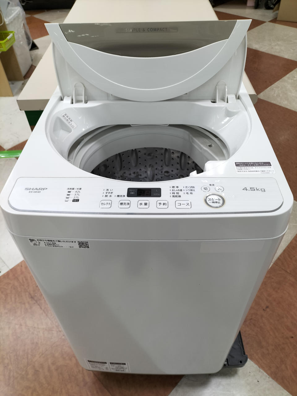 シングルに適した4.5kgタイプ、スタンダードモデルの全自動洗濯機。 |