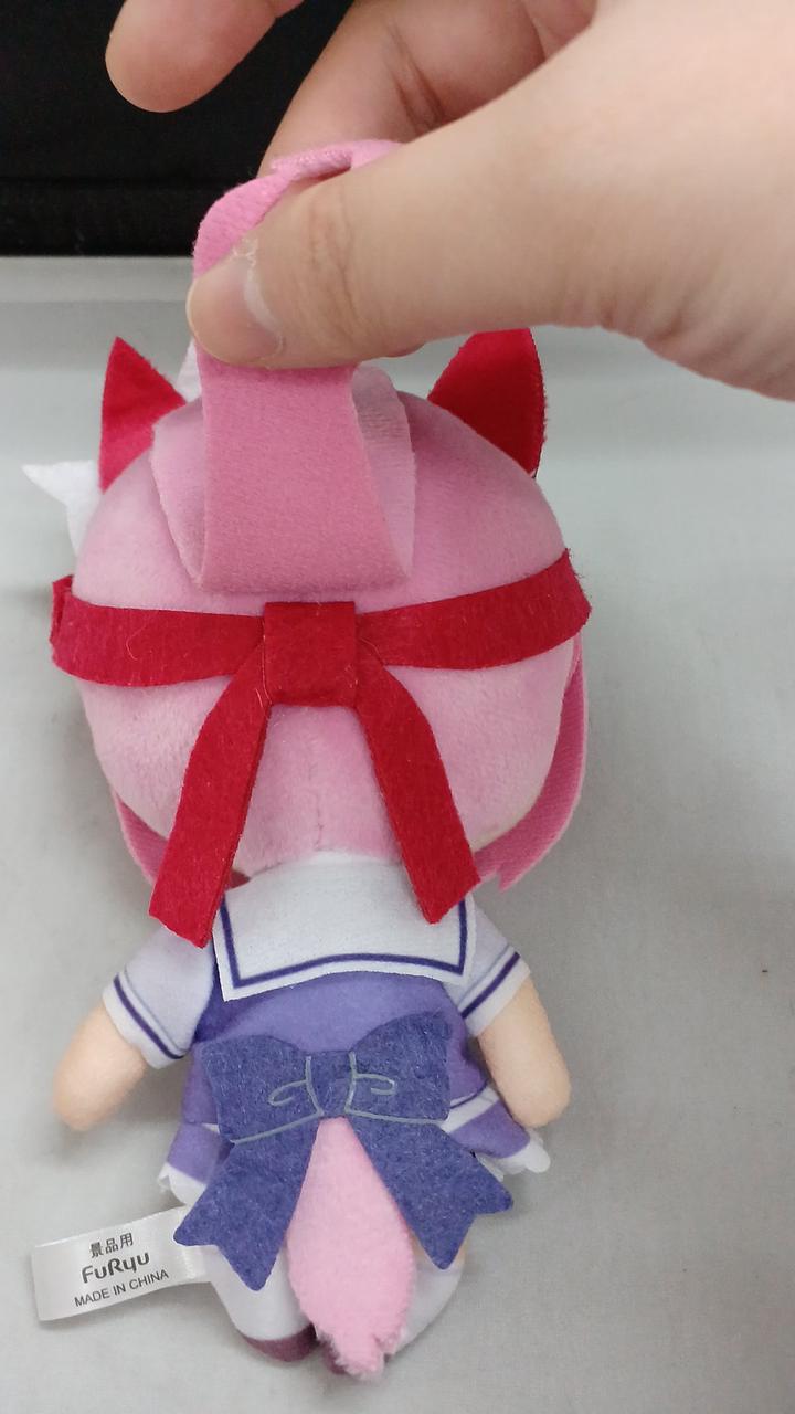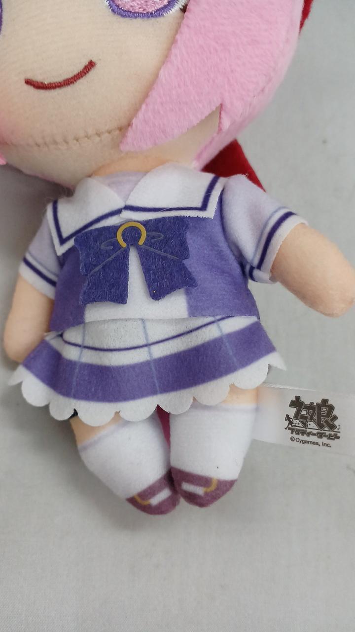 ハルウララの制服衣装のぬいぐるみです。かわいいサイズ感です。