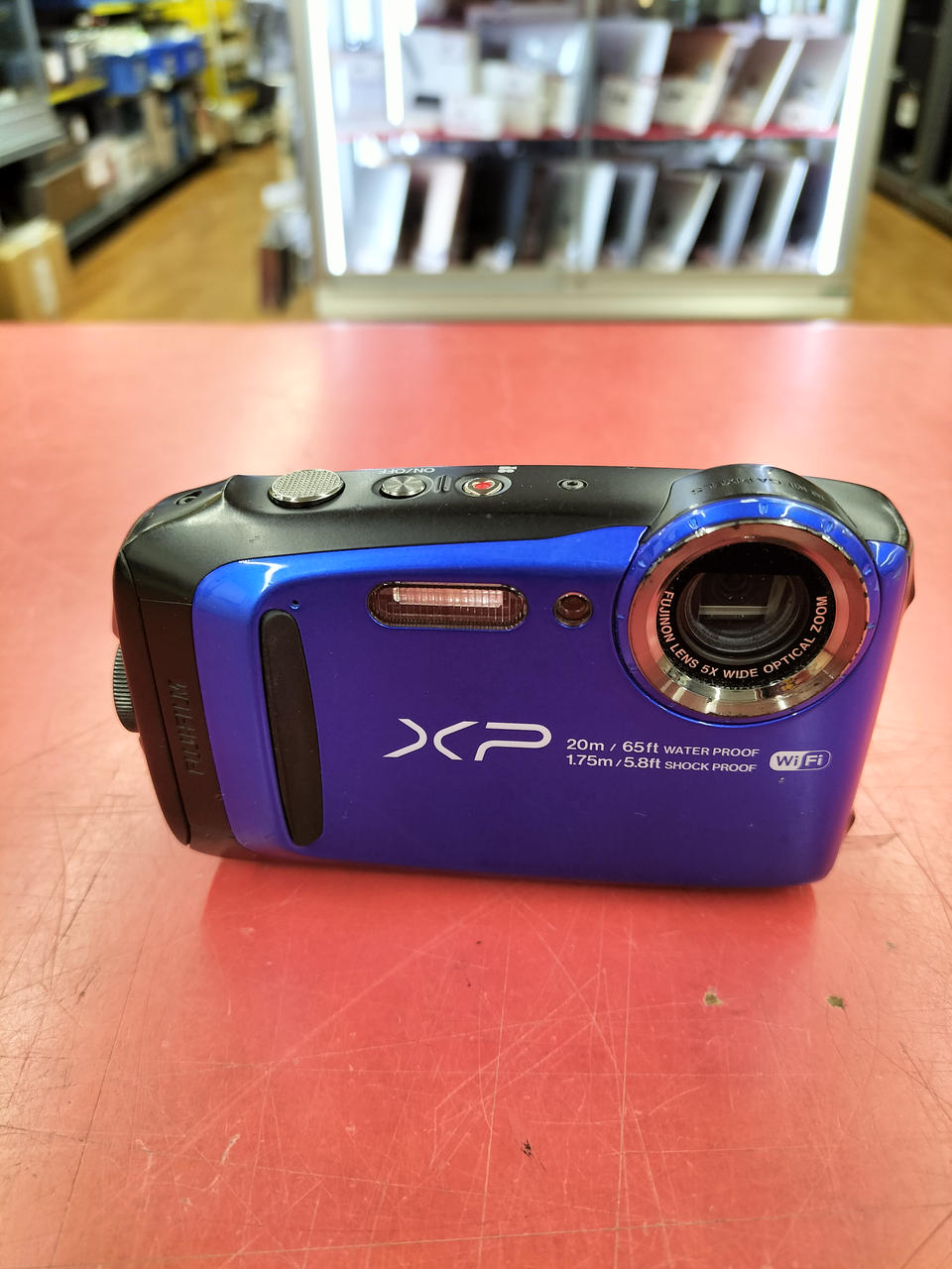 有効1640万画素、フジノン光学式5倍ズーム20M防水、1.75M耐衝撃構造、-10℃耐寒、防塵 |
