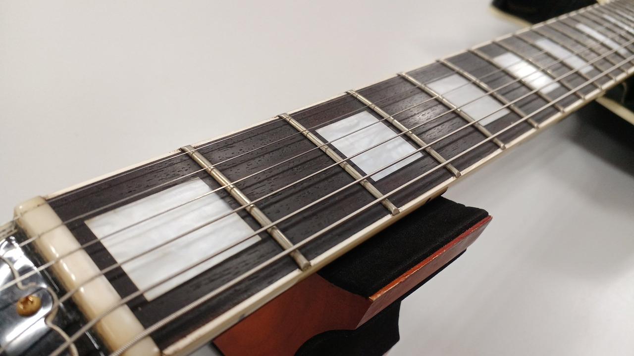 経年相応の打痕、キズございます。(写真参照)ネック:チェック時ほぼストレート。 フレット:2、3弦のローフレットに8割ほどの減り。 トラスロッド:左右回りました。 |