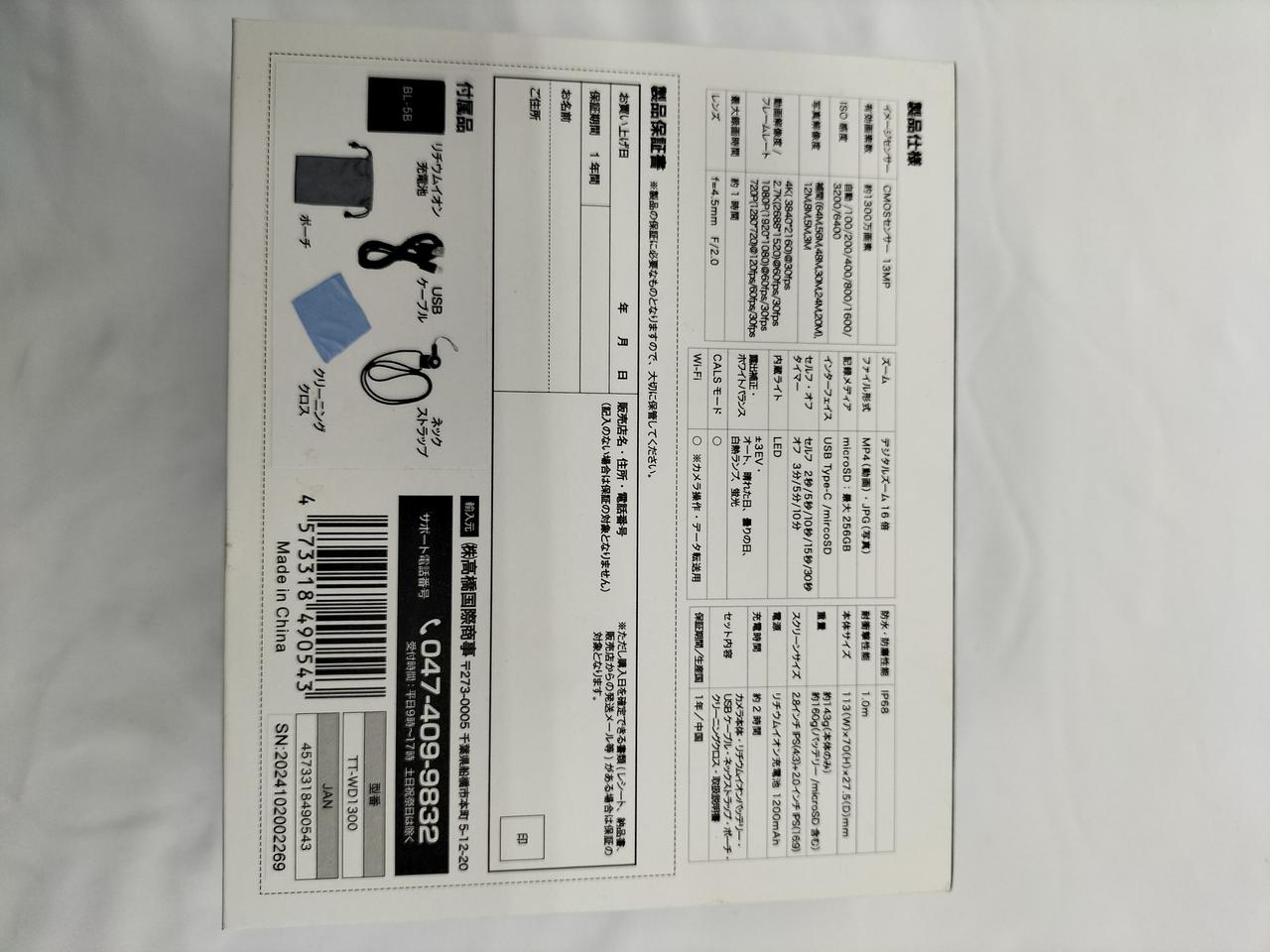 有効画素数:1300万画素 |