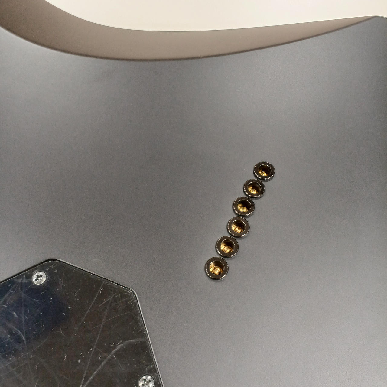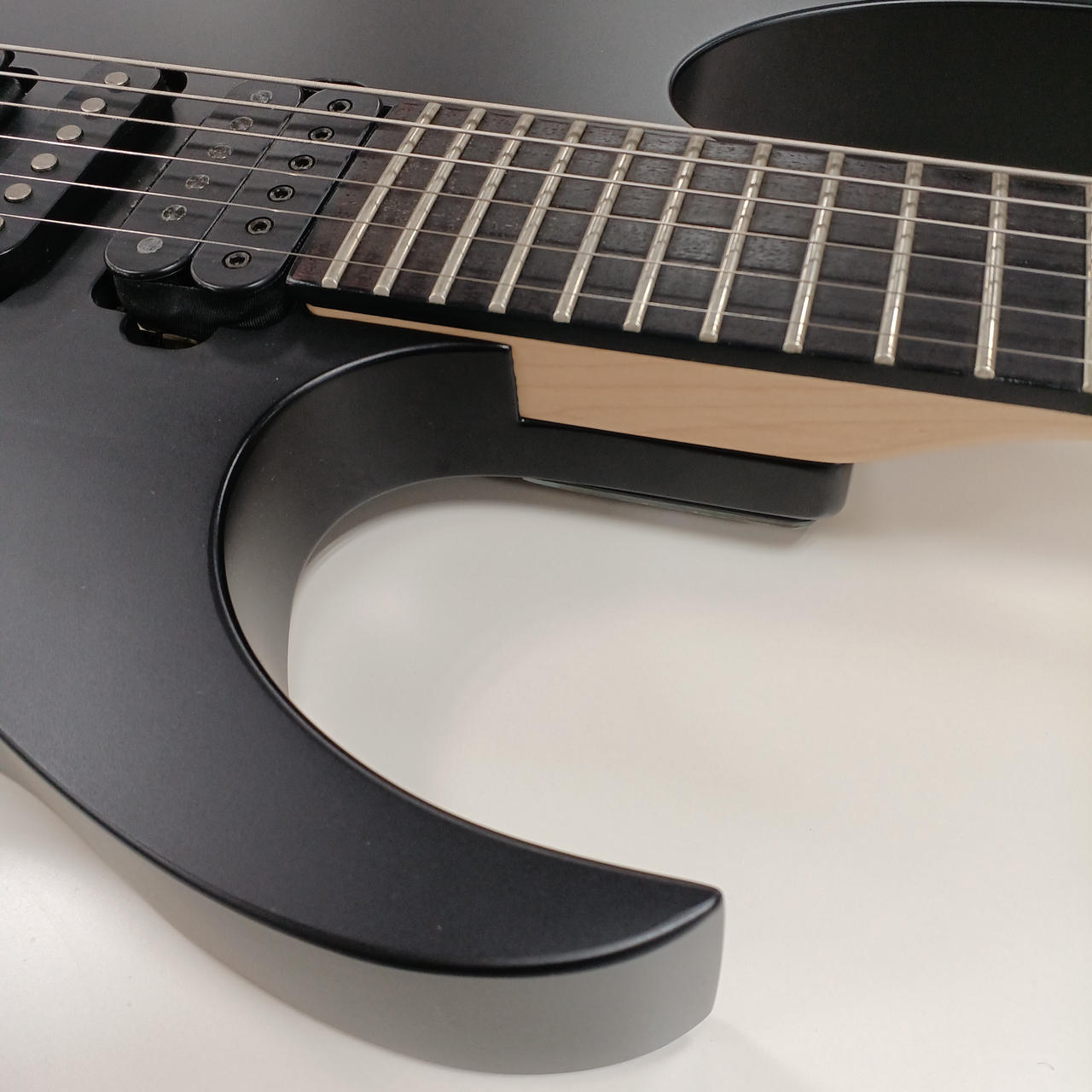 えぐるようにヒール部分をカットしており、ハイフレット域の演奏性を高めています。※ソフトケース付