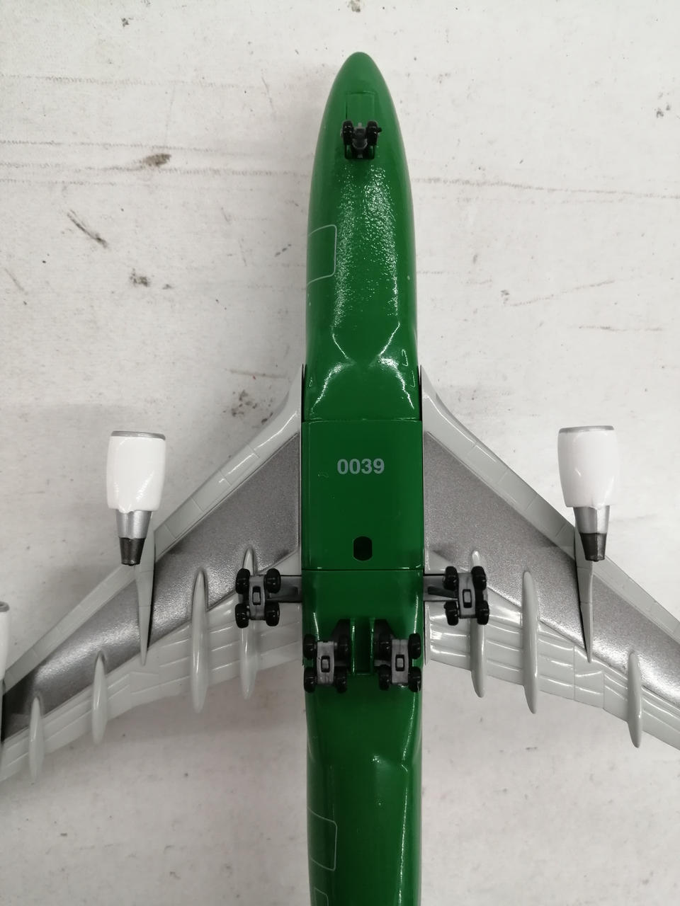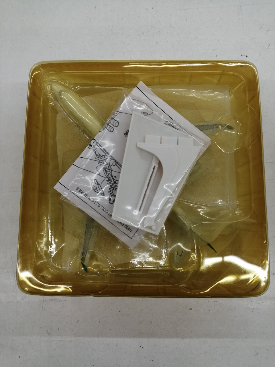 外箱に傷みあります。ブリスター焼けています。機体先頭部に塗装の劣化があります。機体の上から見て右翼の端部の塗装の剥げあります。 |
