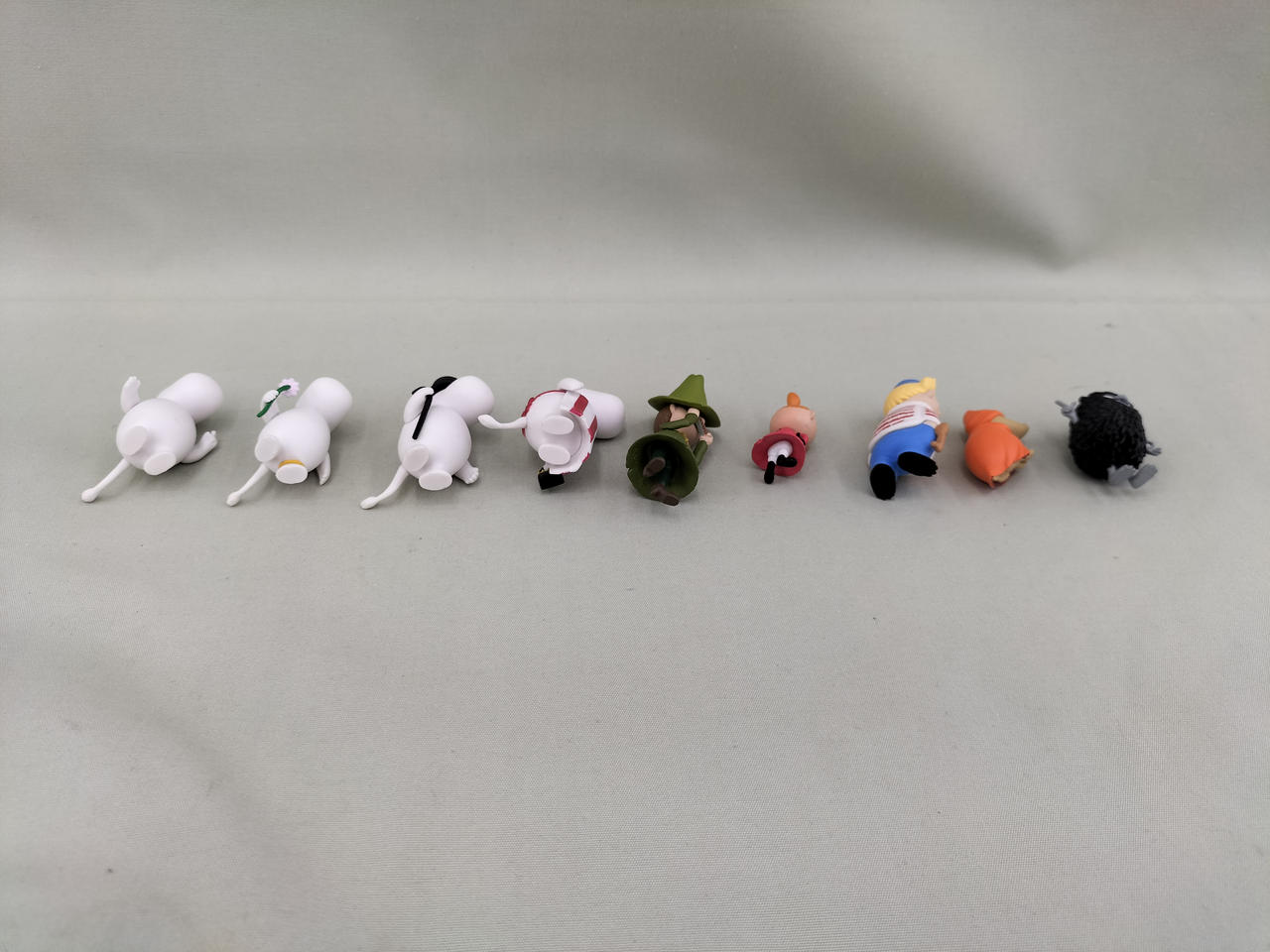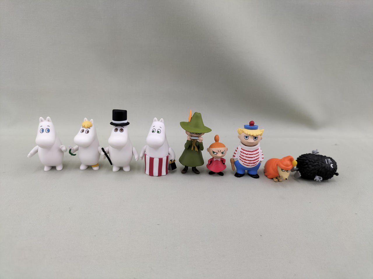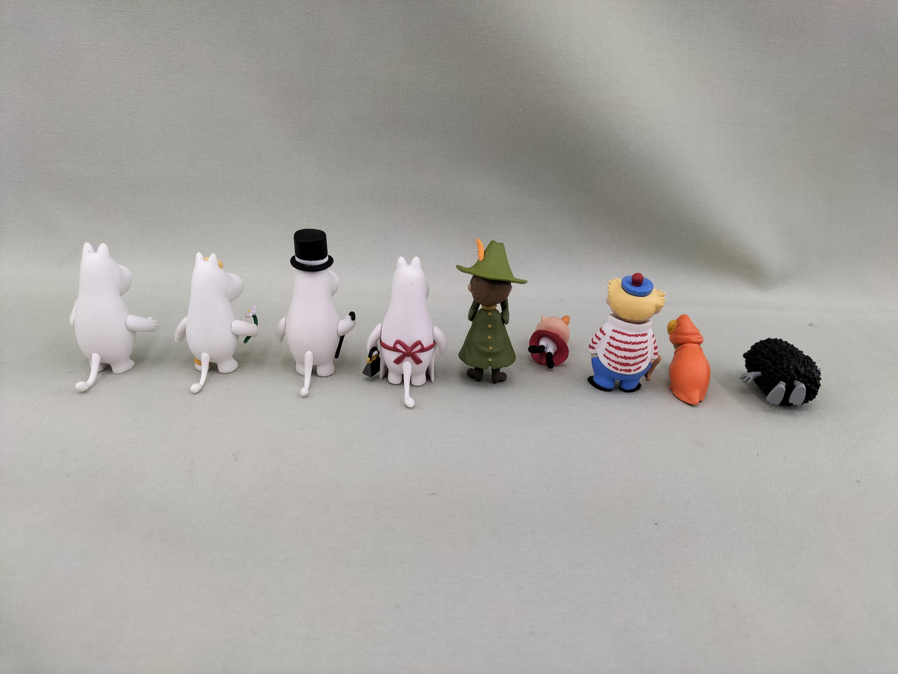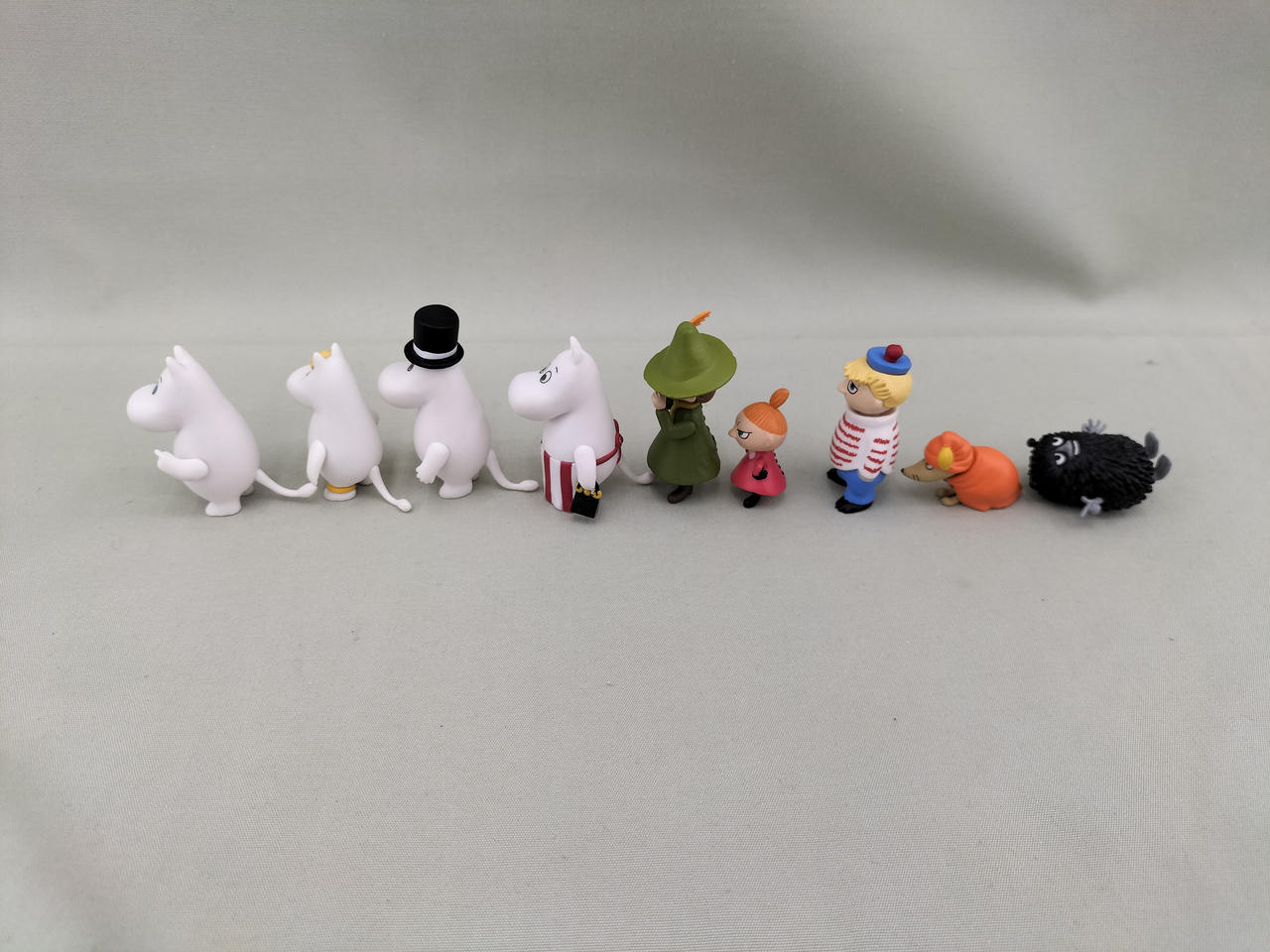 ムーミン、フローレン、ムーミンパパ、ムーミンママ、スナフキン、リトルミイ、トゥーティッキ、ブラウン、スティンキー |