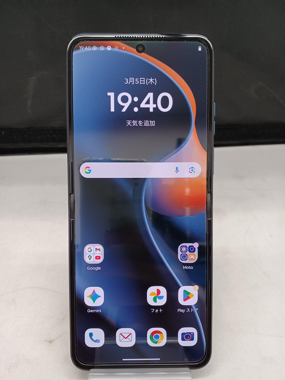 折りたたみ型のスマートフォンです。耐久性アップで安心して長く使えるます。 ·