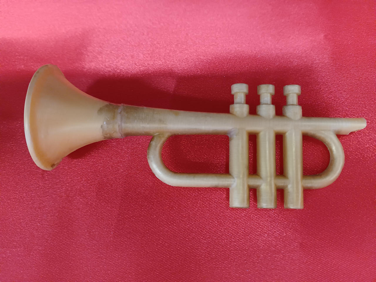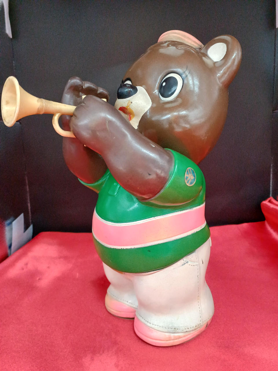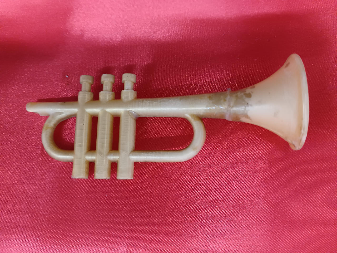 現状販売色ハゲ、汚れ、イタミなど。トランペット先端おそらく破損後再接着している模様。約26cm。