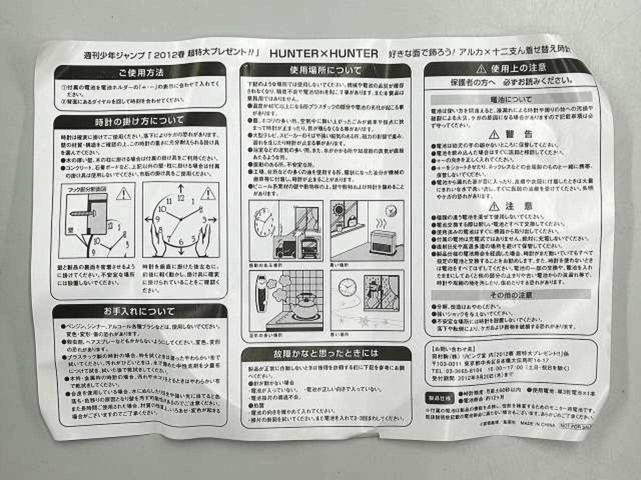 週刊少年ジャンプ 20112春 超特大プレゼント!! HUNTER×HUNTER 好きな面で飾ろう!アルカ×十二支ん着せ替え時計/時計の針が入っている袋が未開封のため動作未チェック/箱・説明書ダメージあり/現状品 |