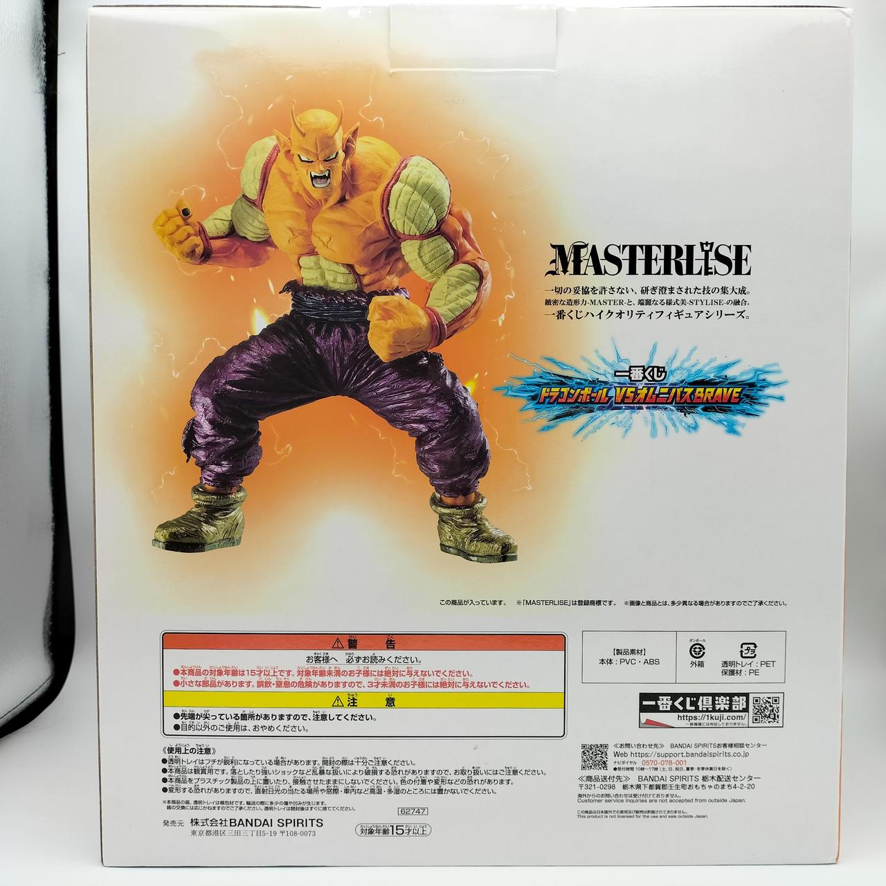 映画にてセルマックスと対峙した際に巨大化して戦闘を繰り広げたオレンジピッコロがMASTERLISEシリーズに登場! 全身のカラーリングもさることながら、激しい戦闘で衣服が破損したバトルダメージ状態を再現した造形は必見です。 ラストワン賞は身に纏っている衣服にメタリック彩色を施した特別仕様!