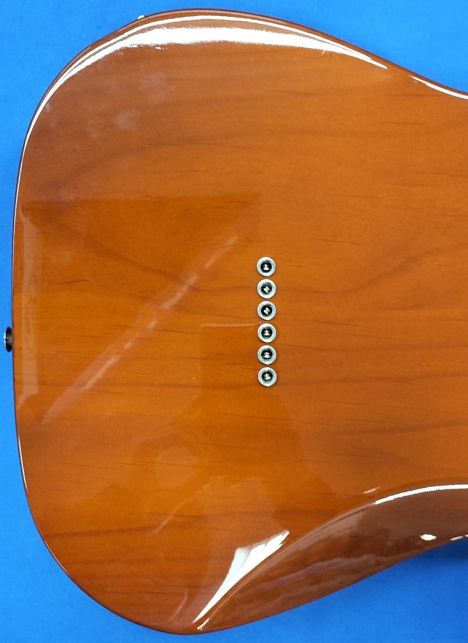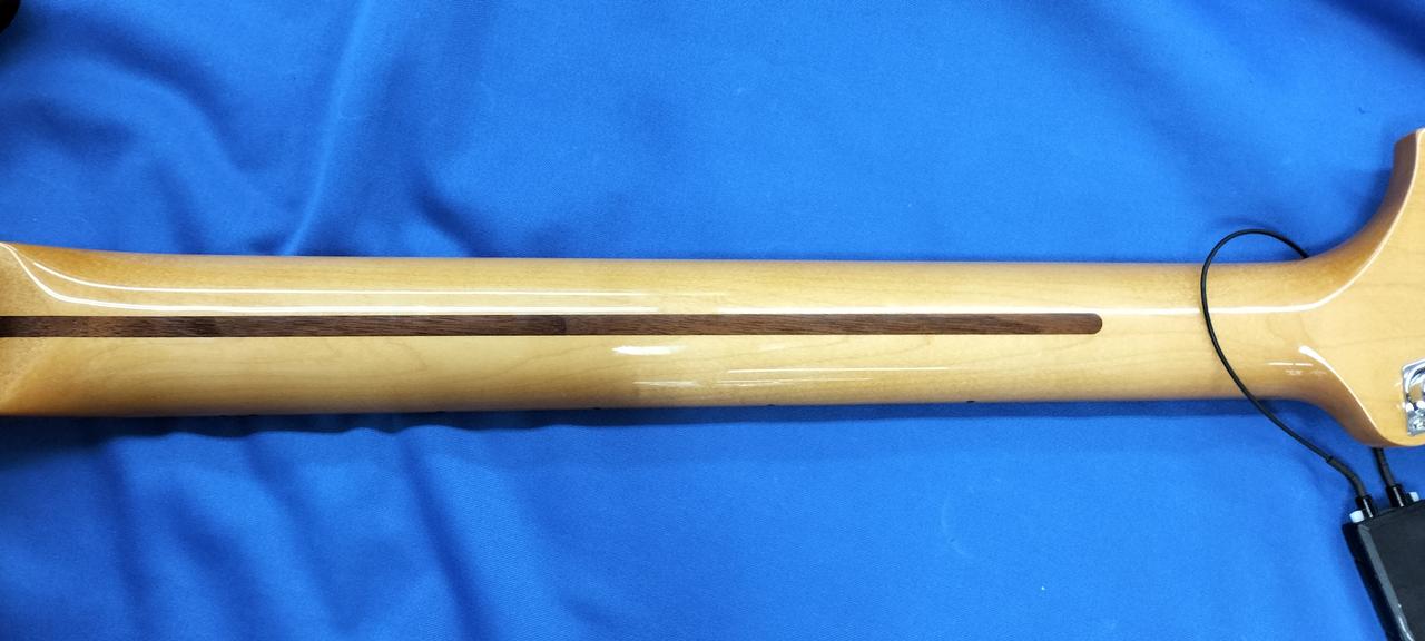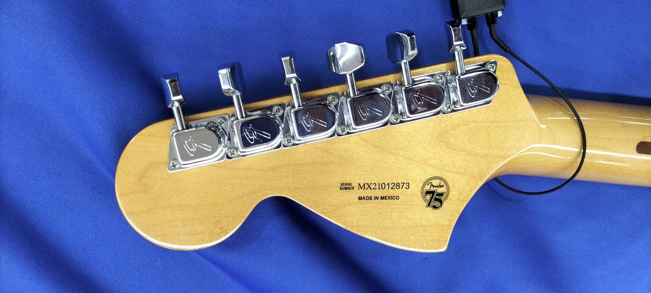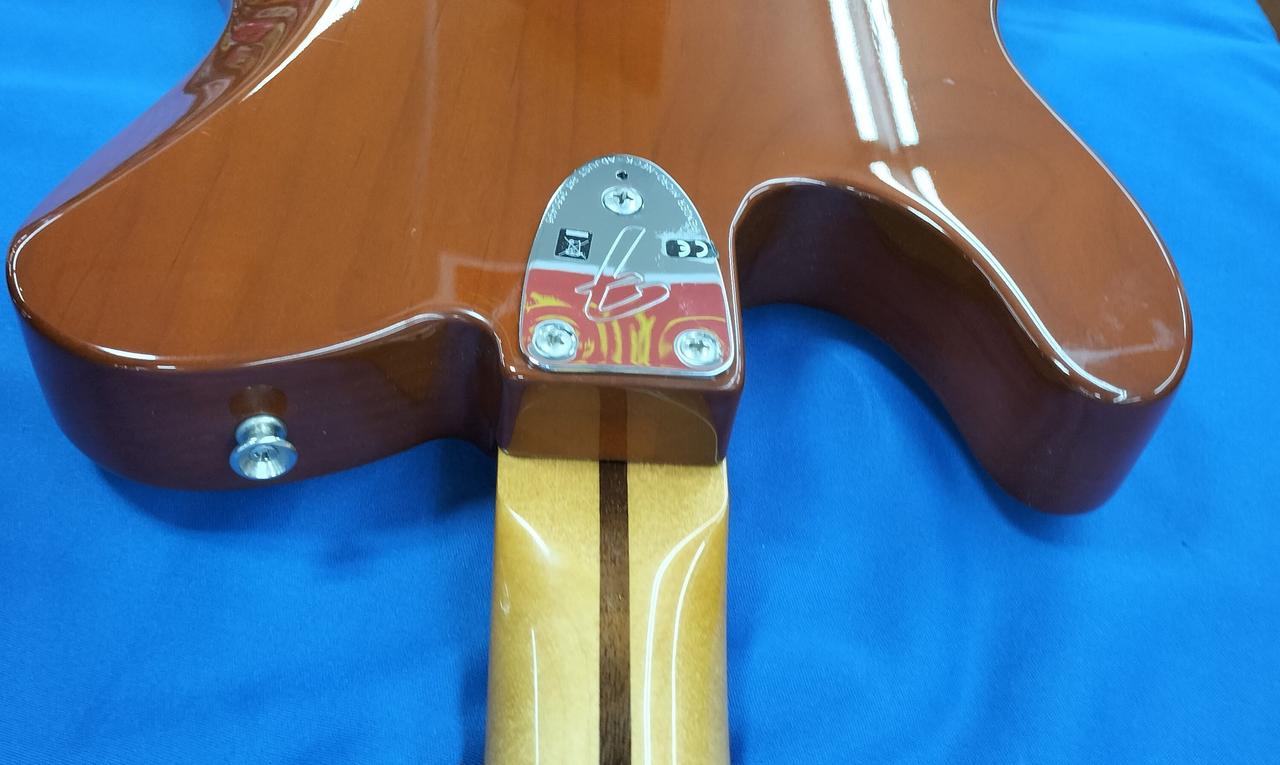 当時ストラトから流用されたラージヘッドネックや3点留めピックガードを再現し、トラディショナルなスタイルに仕上がっています