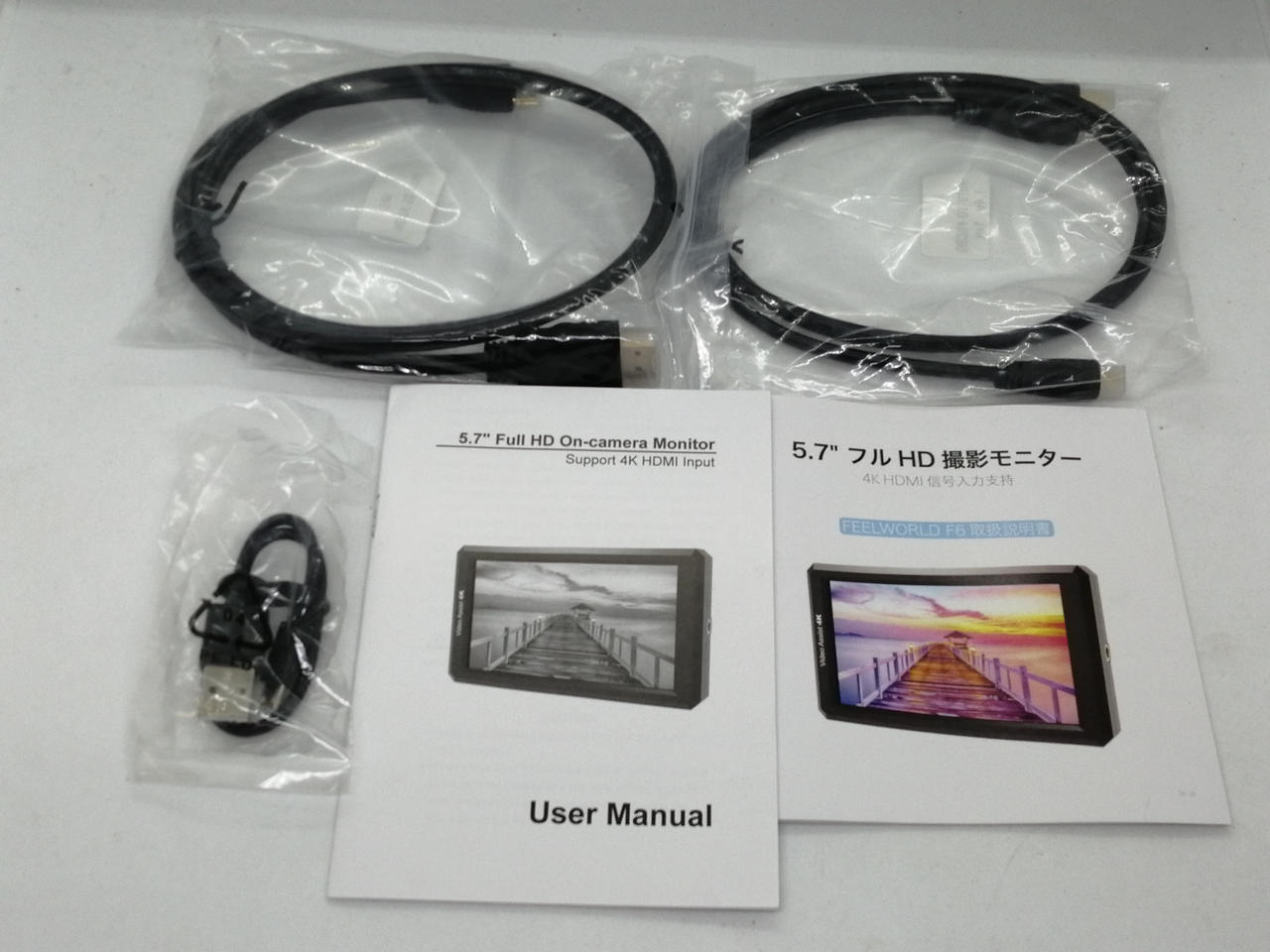 サイズ:5.7インチ 解像度:1920X1080 比例:16:9 輝度:460CD/M2 入力:HDMI 出力:ステレオミニジャック 付属品:化粧箱・取扱説明書・接続ケーブル・バッテリー・充電器付属 |