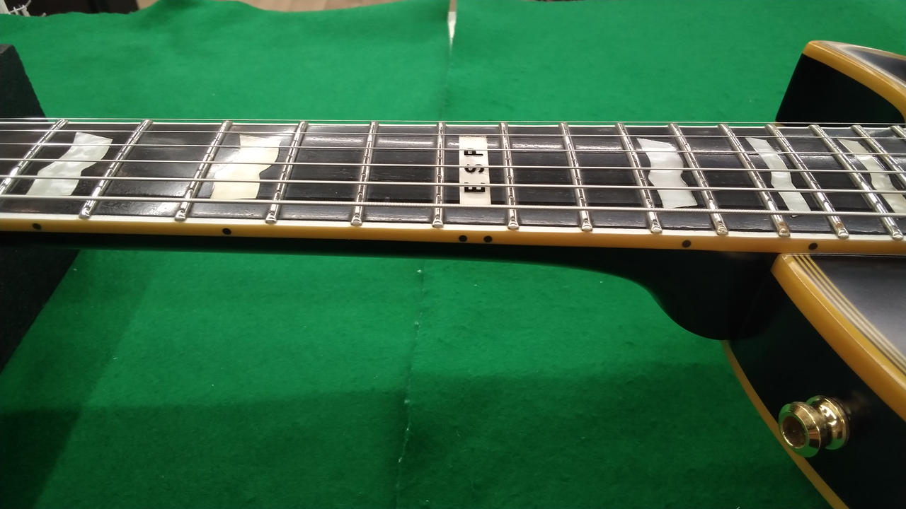 「E-II」シリーズに属するプロ仕様のハイエンドモデル。日本製・東京工場で製造。 アクティブEMGピックアップ。ハードロック~メタル/モダンロック系のサウンドを追求する方にオススメ。 トラスロッド左右に45°ずつ回りました(左緩め)。フレット高さ約1.3mm |