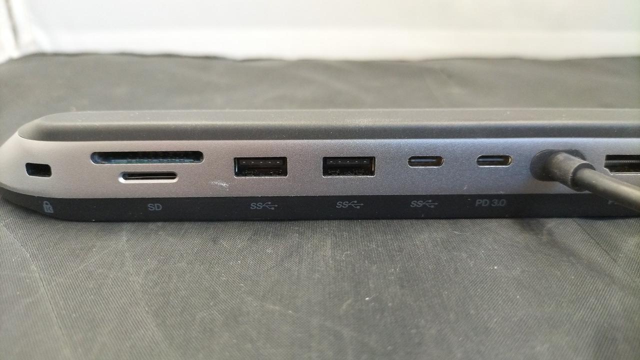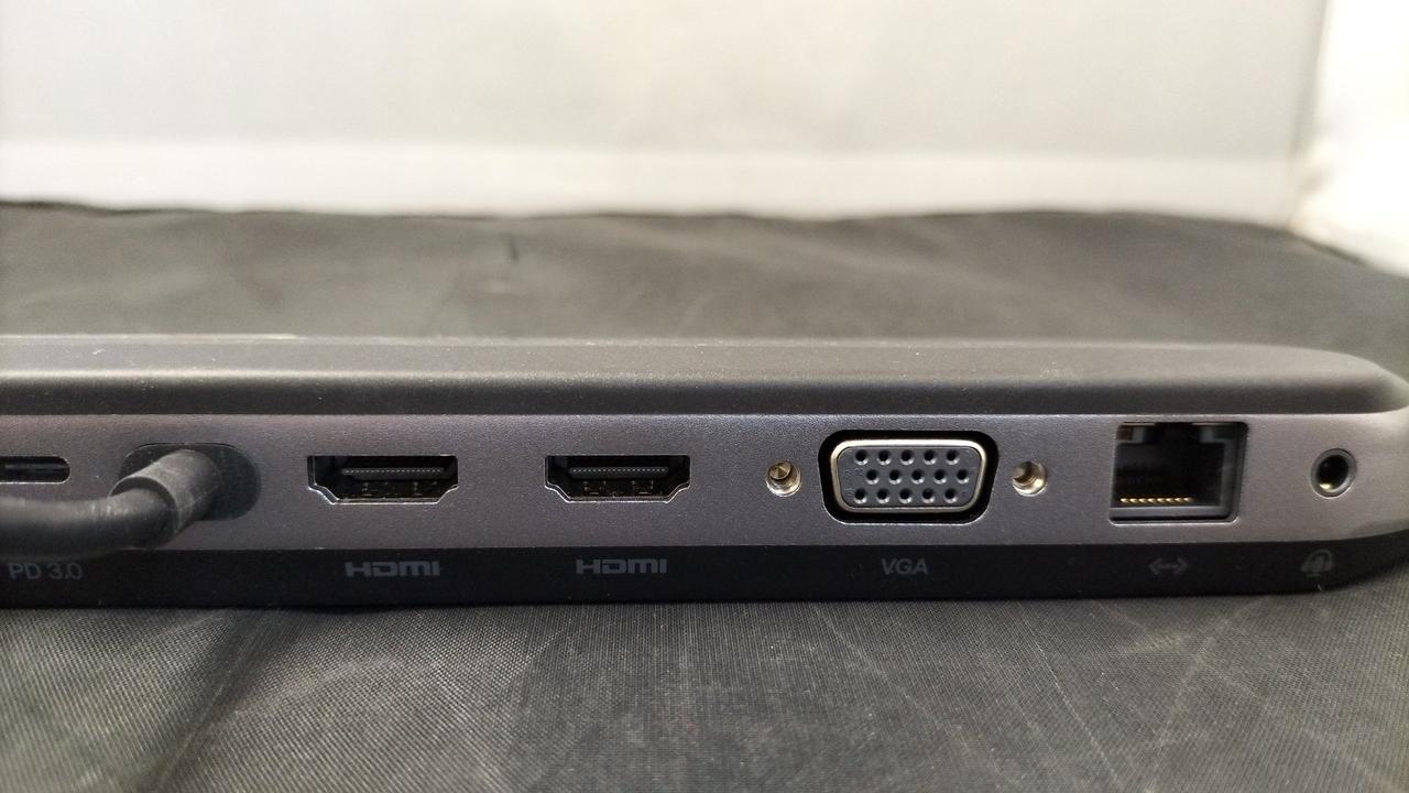 【全ポート詳細】HDMI×2、VGA×1、USB-A×2、2.5Gbイーサネットポート、3.5mmオーディオポート(入出力)、USB-Cポート (PD85Wパススルー充電対応ポート)、USB-Cポート(10Gbps転送可)、SD4.0、microSD3.0、中央一体型接続用電力供給Cポート |