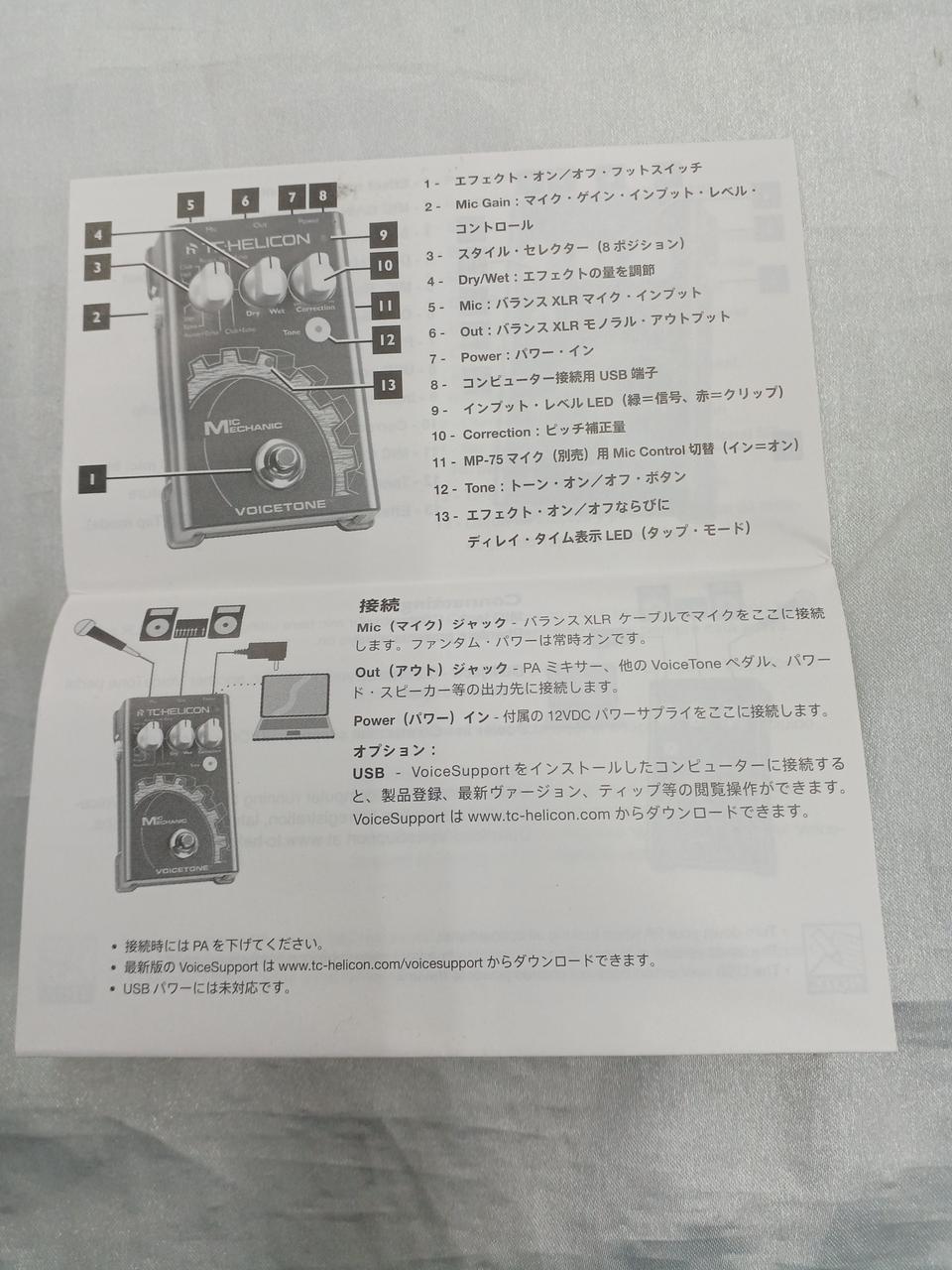 Mic Mechanicは、TC-Helicon社製のMic Control機能搭載スーパーカーディオイド・ハンドマイク「MP-75」(別売)に対応。Mic Mechanicから離れた場所からでも、マイク経由でエフェクトのOn/Offが可能です。