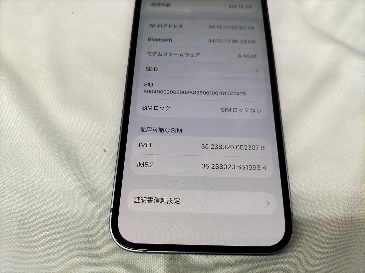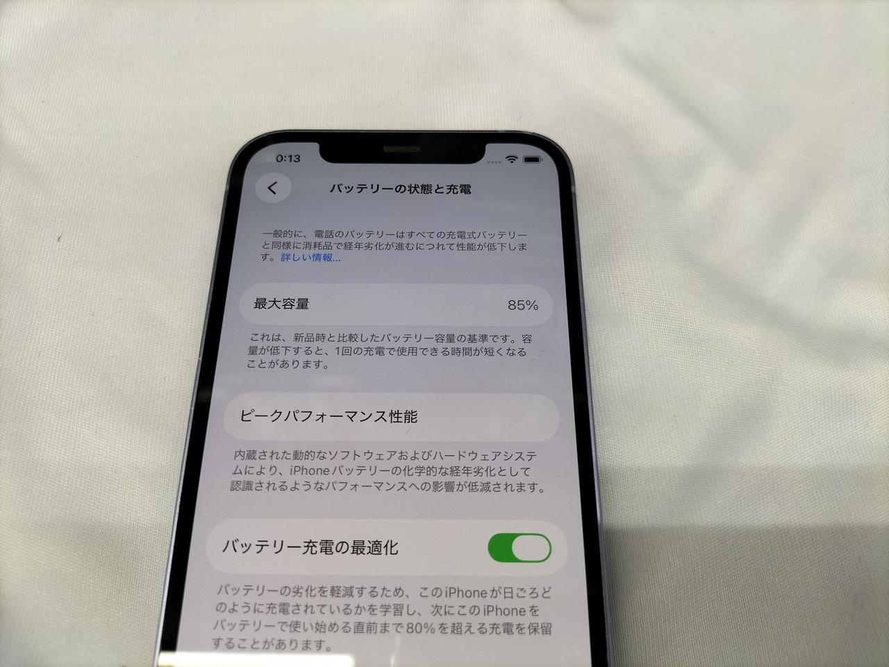 IOS:26.3 容量:128GB SIMロック:なし キャリア:AU バッテリー最大容量:85% |