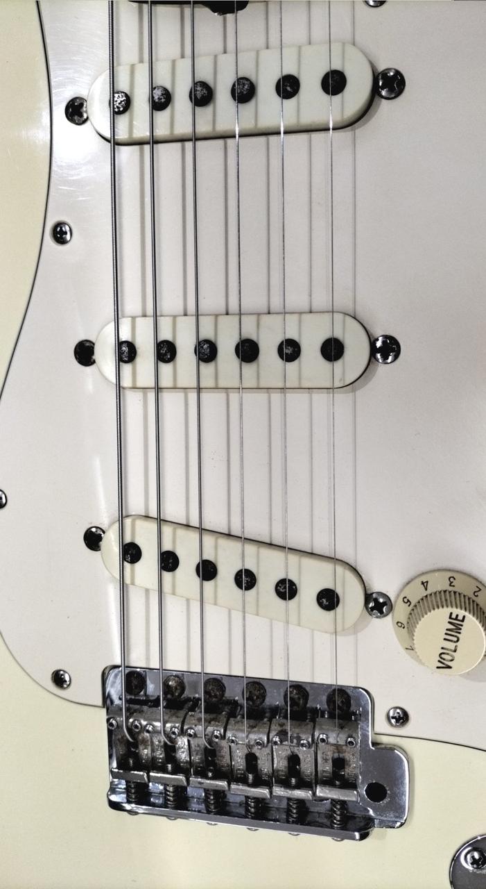 ヴィンテージホワイトとメイプルネックの組合せで抜群の存在感を放つ1本。