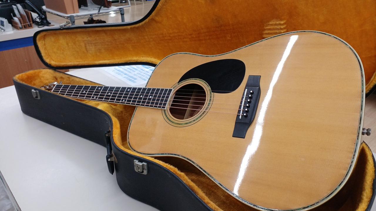 40年以上前のオール合板のコストパフォーマンスモデルですが年式を考えると綺麗です! トップ:スプルース サイド・バック:ローズウッド ネック:ナトー 指板:ローズウッド ブリッジ低く交換されています。 ハードケース付き |