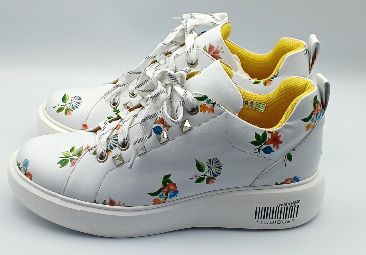 ハンドメイドならではの個性的な色使いが魅力のハイカットスニーカーです。