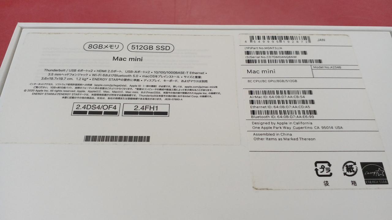 本体・箱・電源ケーブル |