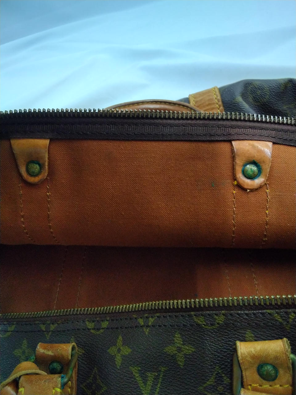 生地は汚れ、シミ、緑青錆折り目跡有り |