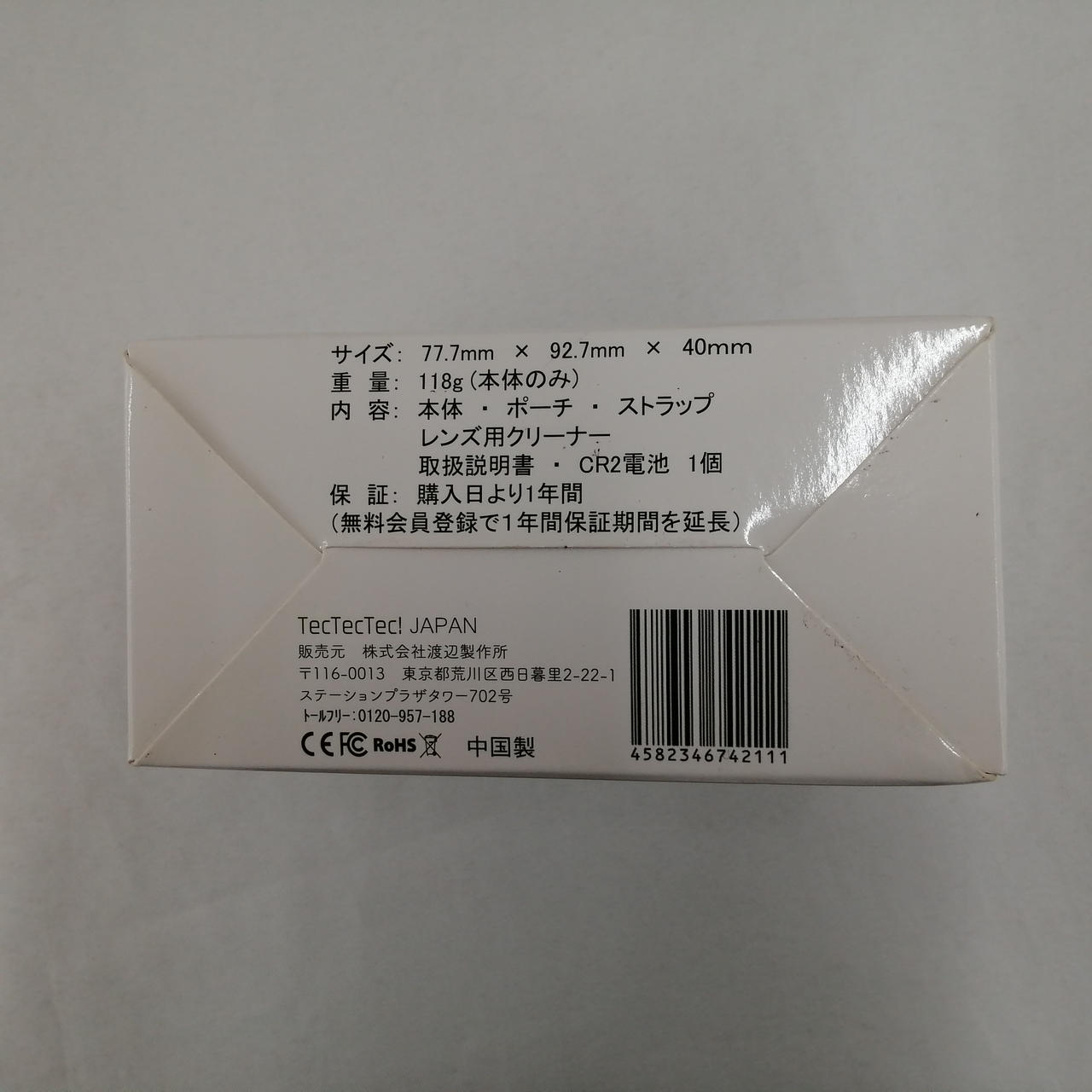 化粧箱・取扱説明書・CR2-3V電池・ストラップ・専用ケース・ファイバークロス |