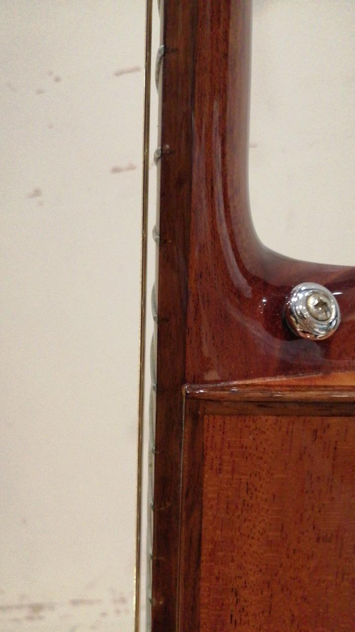 ショルダー部の楕円状のホールは自身のサウンドをしっかりとモニタリングできるように設計されています。ピックアップはフィッシュマンです。