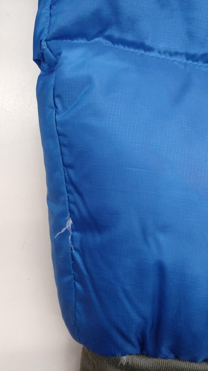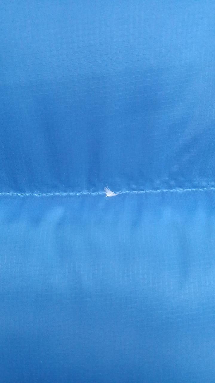 チャックの右横と左袖に綿の飛び出しがあります。 |