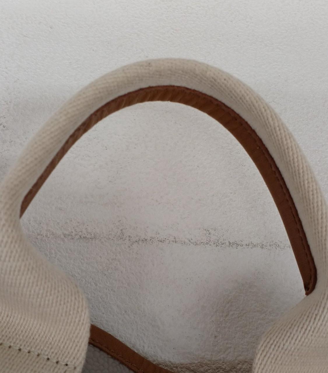 TOPKAPIのミニトートバッグです。中のポーチが欠品しています。片側の下部分に小さなシミがあり、ハンドル部分にもそれぞれ汚れがありますがそれ以外は特に目立つダメージは無いのでまだまだご使用して頂けるお品です。 |