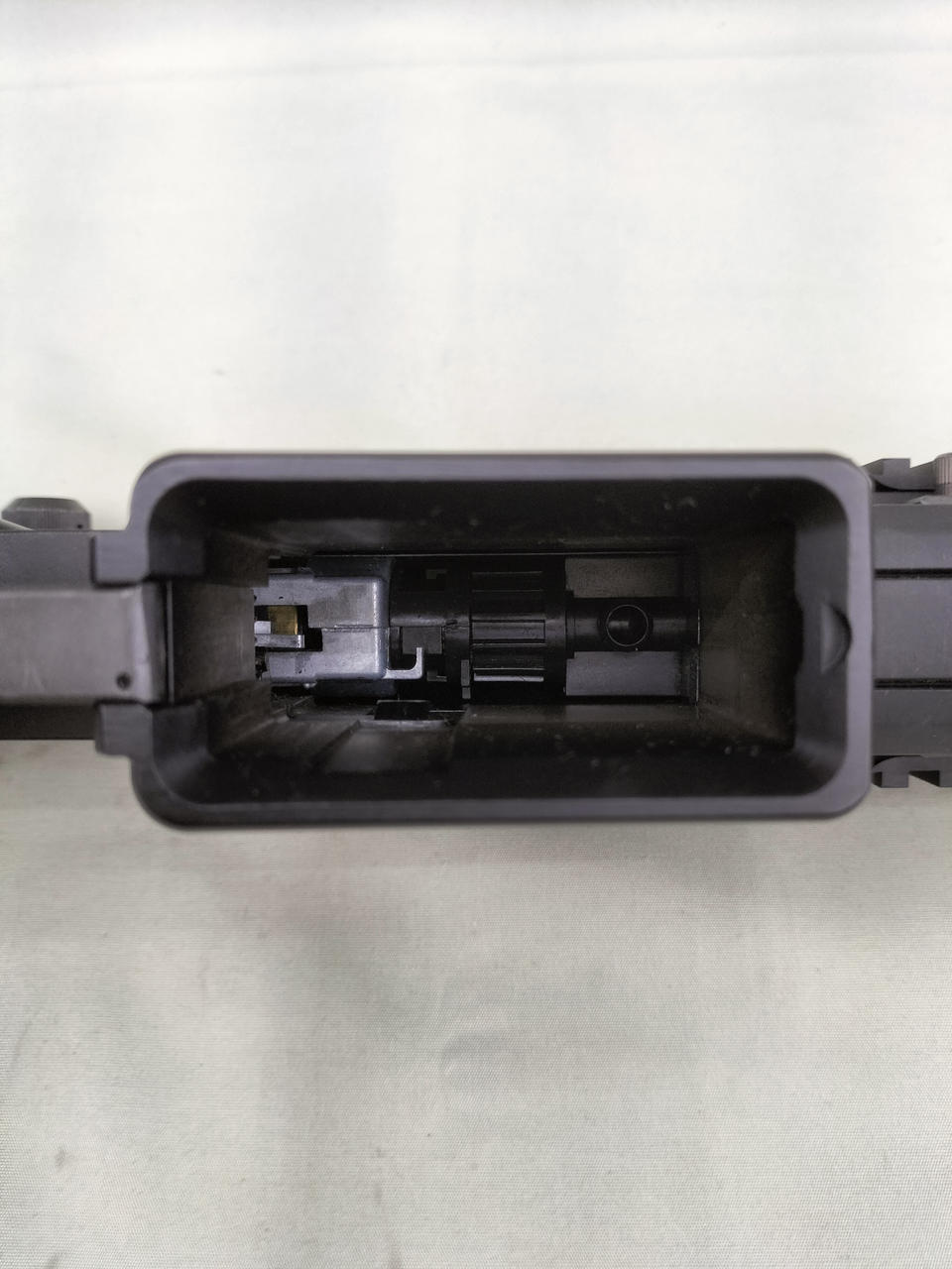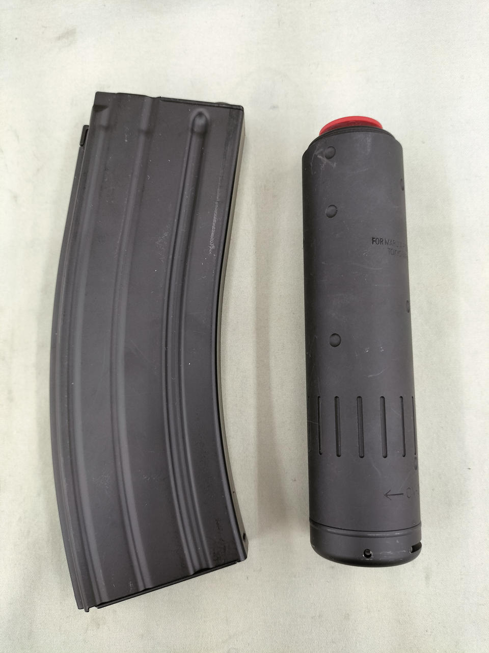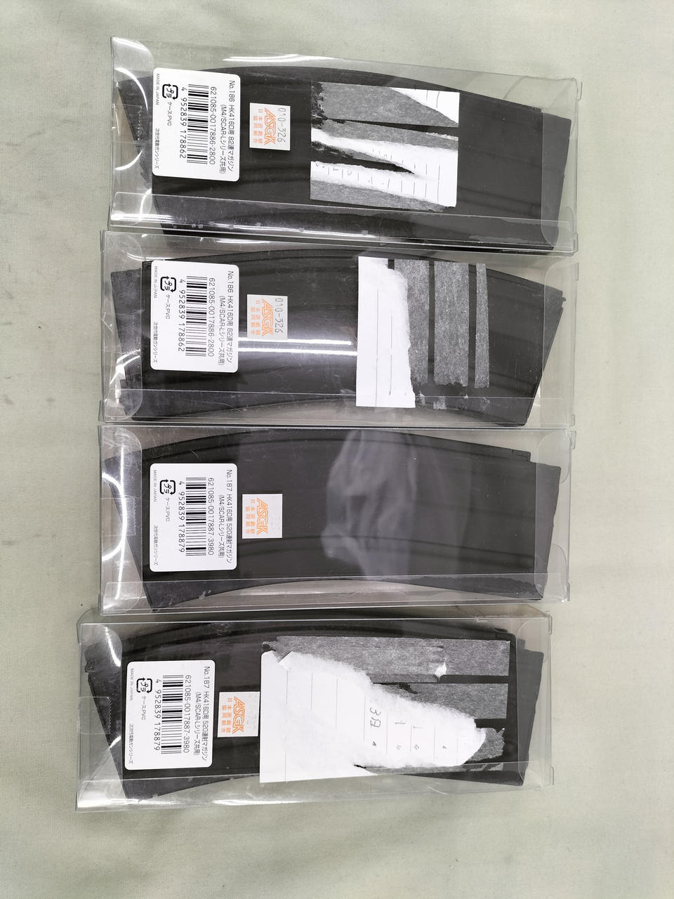 予備マガジンのケースにキズや紙を貼り付けた跡があります。 |