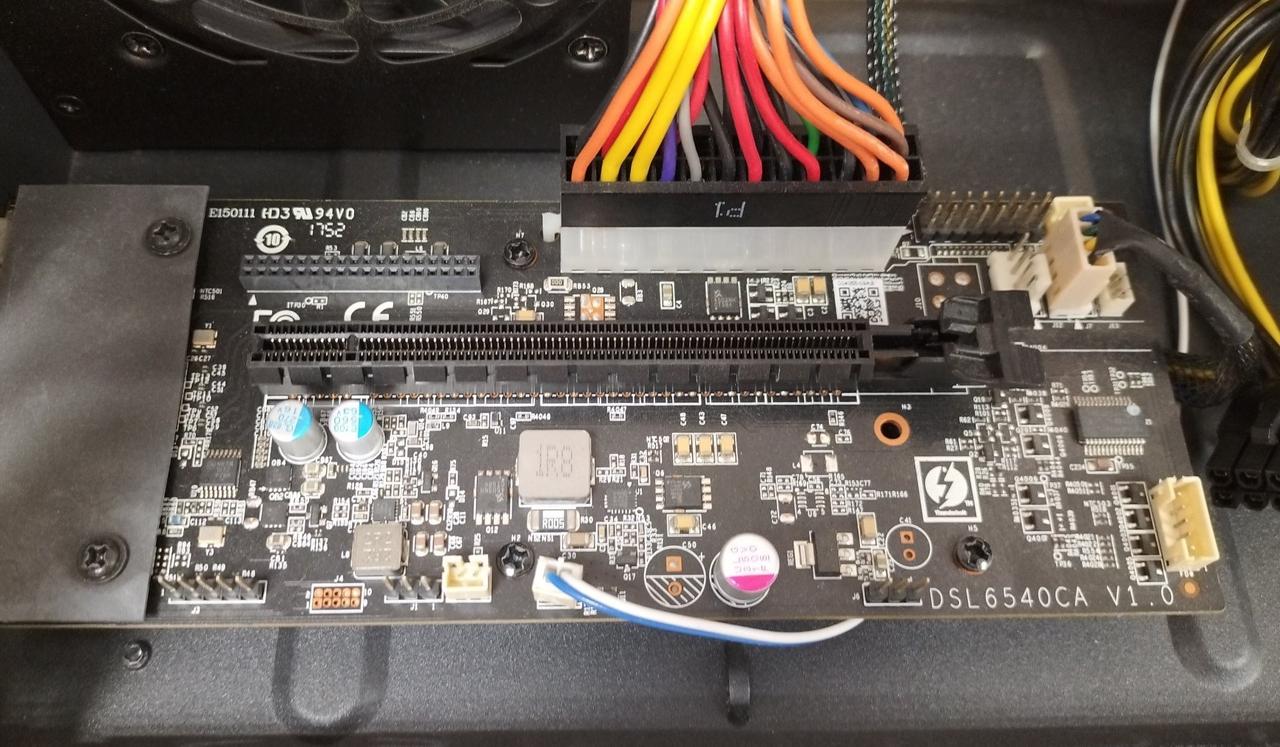 PCI Express接続のビデオカードをThunderbolt 3を用いて外付けするためのボックス。 |